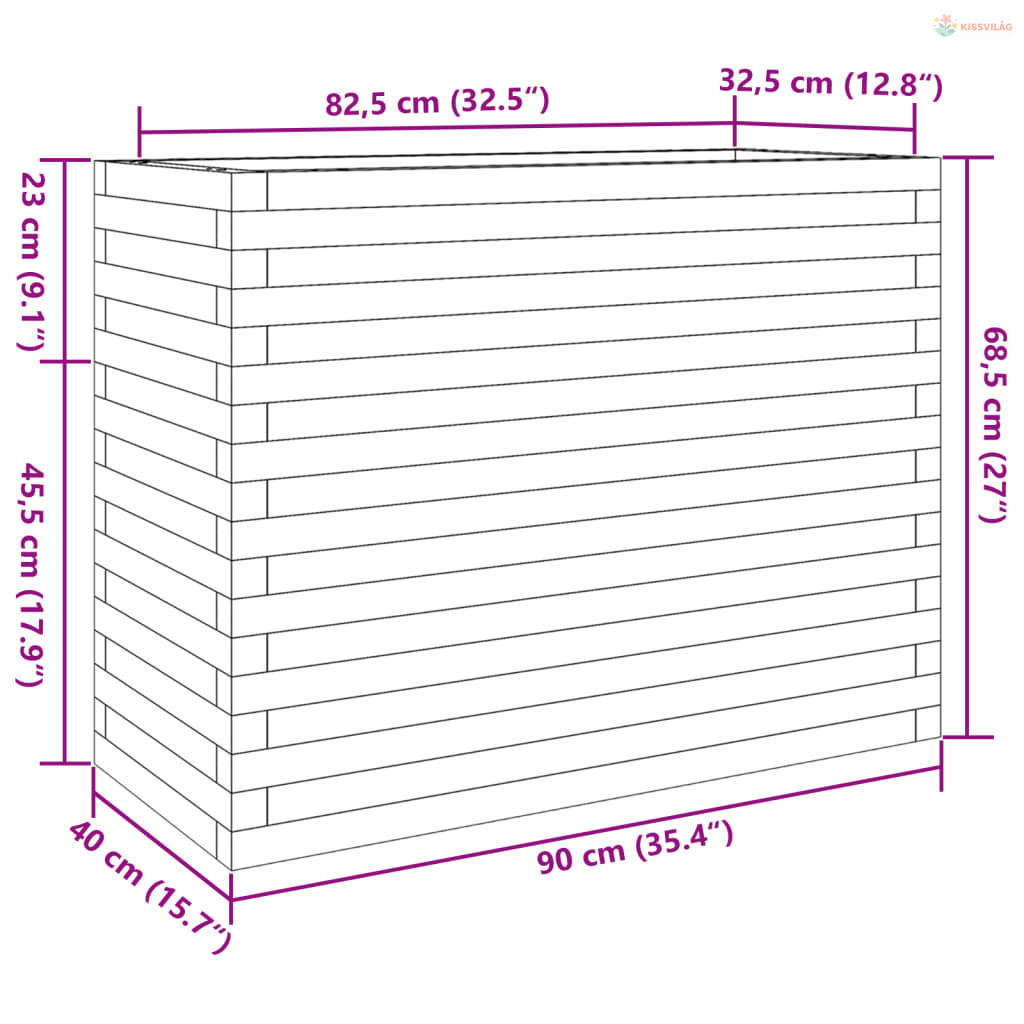 Viaszbarna tömör fenyőfa kerti virágtartó 90 x 40 x 68,5 cm
