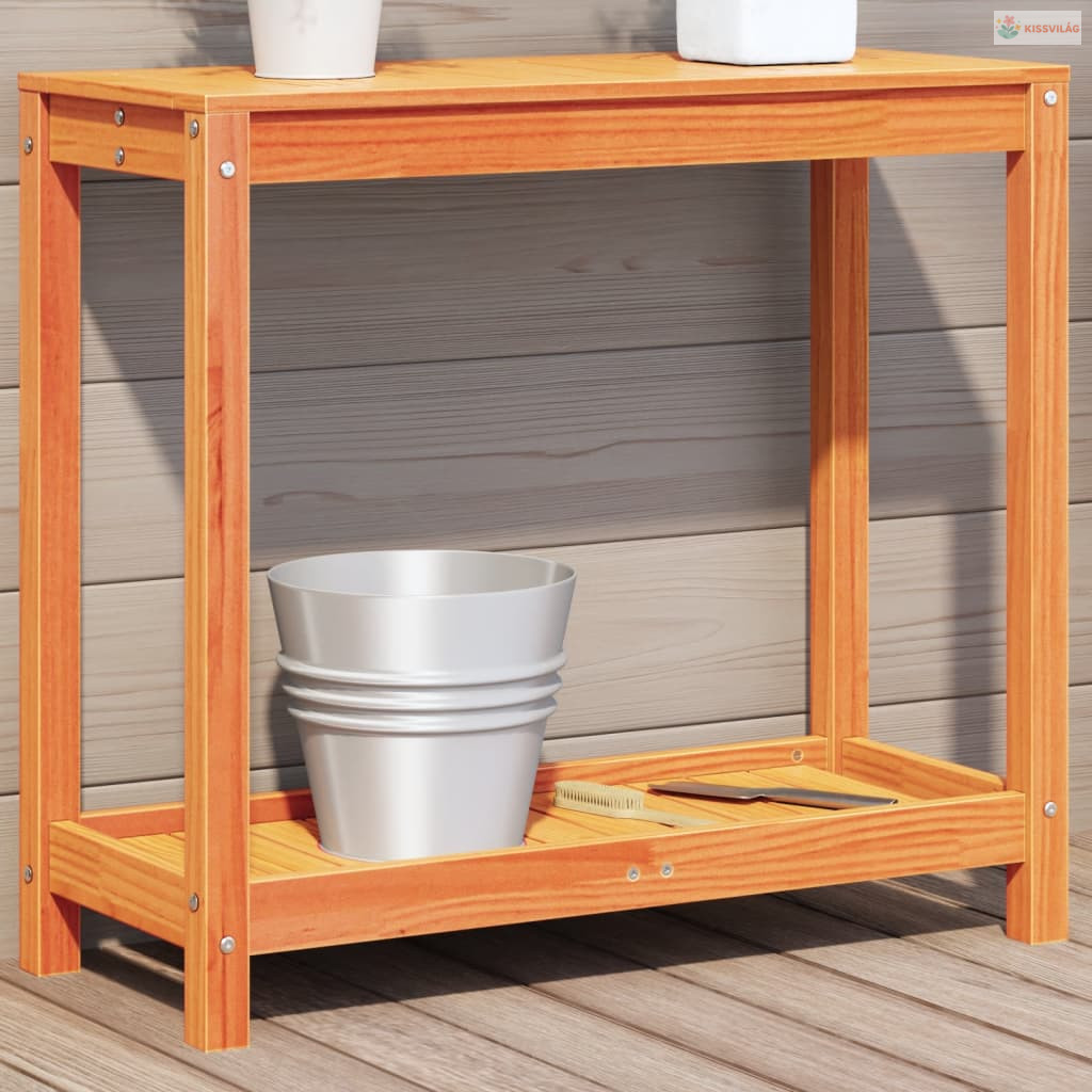 Viaszbarna tömör fenyőfa ültetőasztal polccal 82,5 x 35 x 75 cm