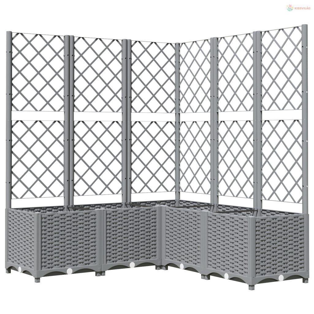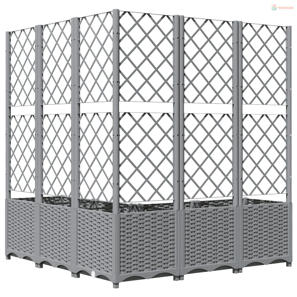 Világosszürke PP rácsos kerti ültetőláda 120 x 120 x 136 cm