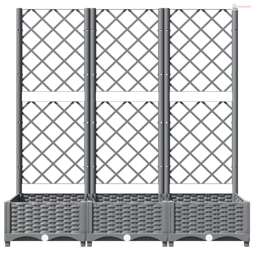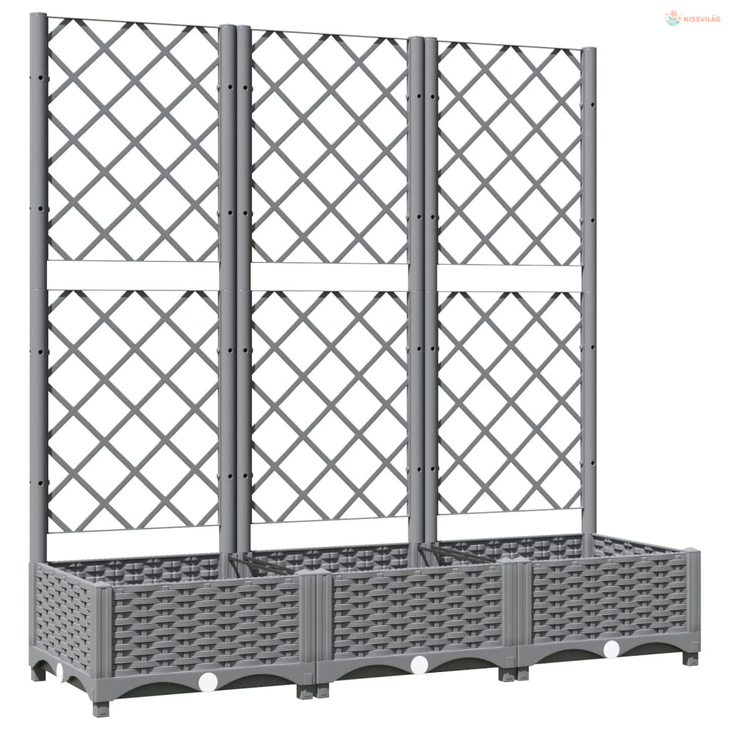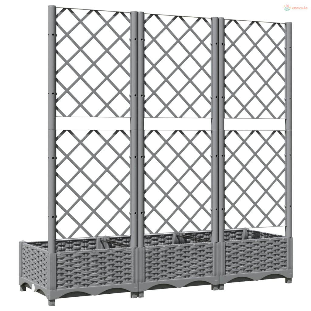 Világosszürke PP rácsos kerti ültetőláda 120 x 40 x 121,5 cm