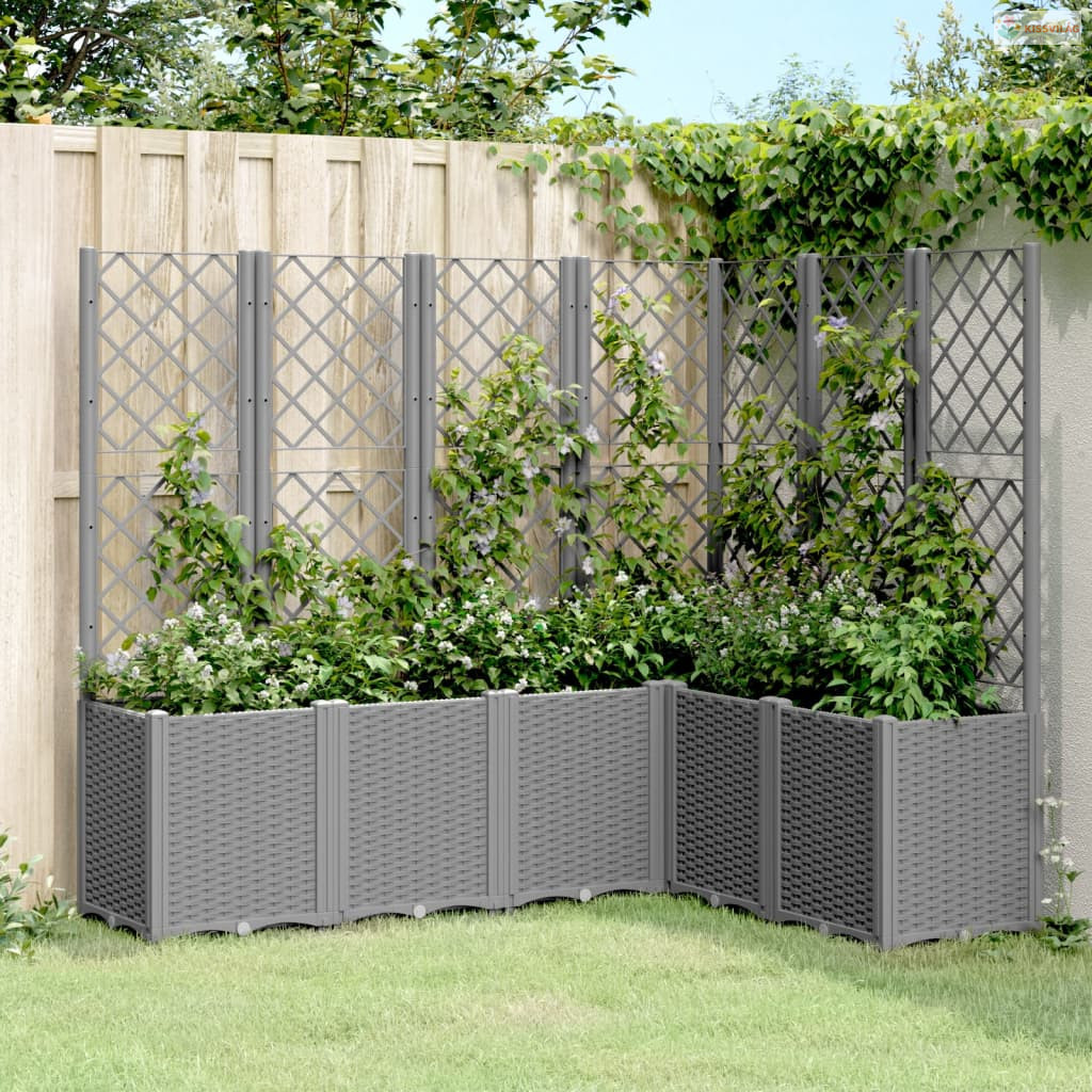 Világosszürke PP rácsos kerti ültetőláda 160 x 120 x 140 cm
