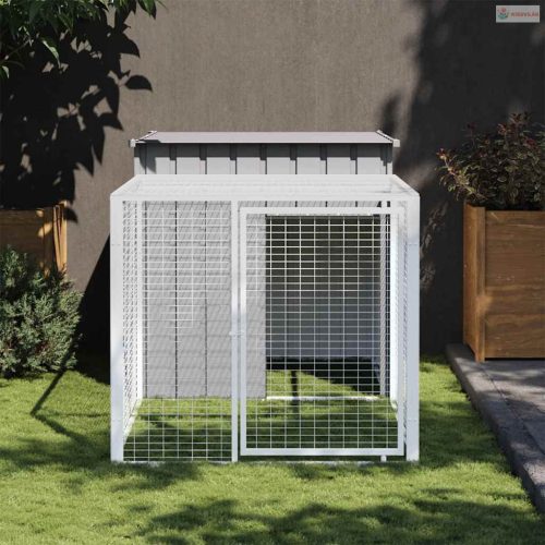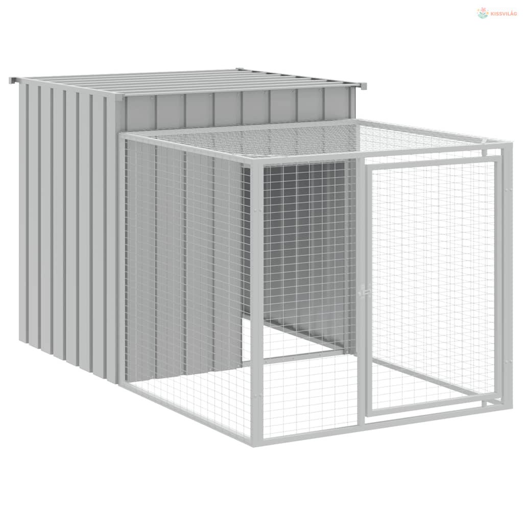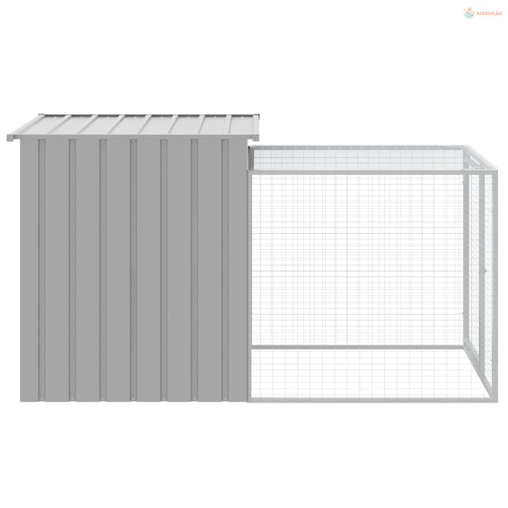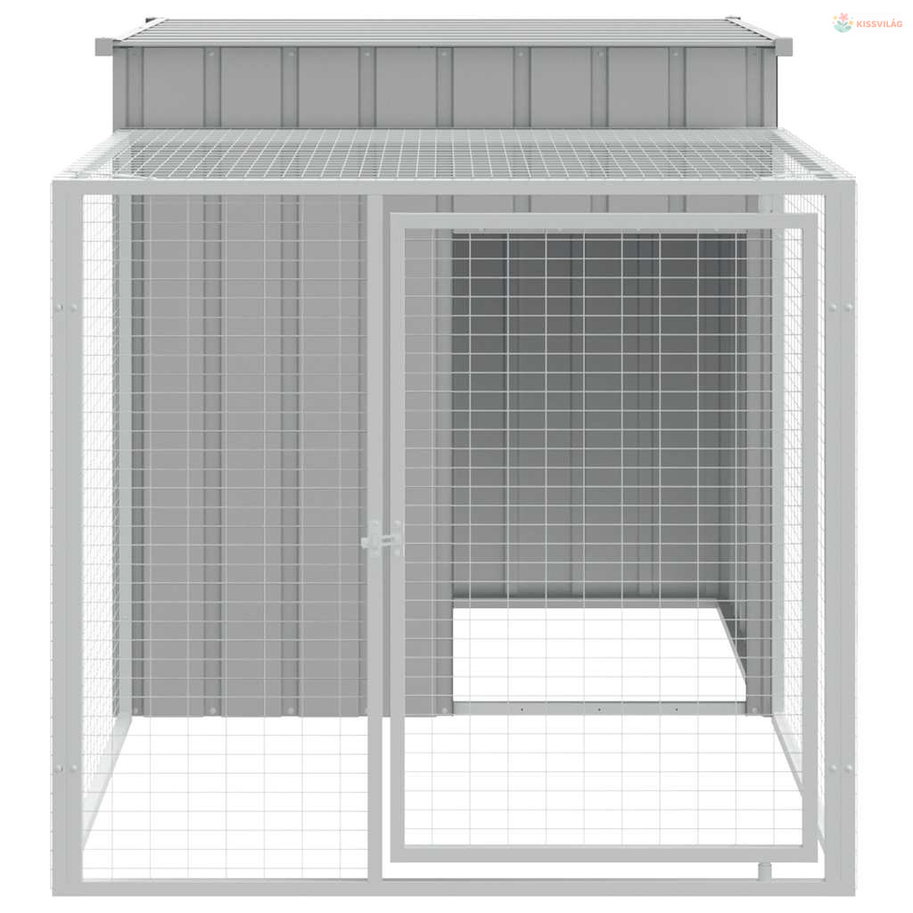 Világosszürke horganyzott acél csirkeketrec kifutóval 110 x 201 x 110 cm