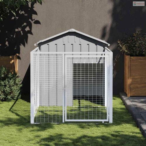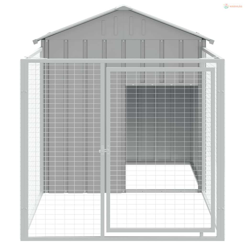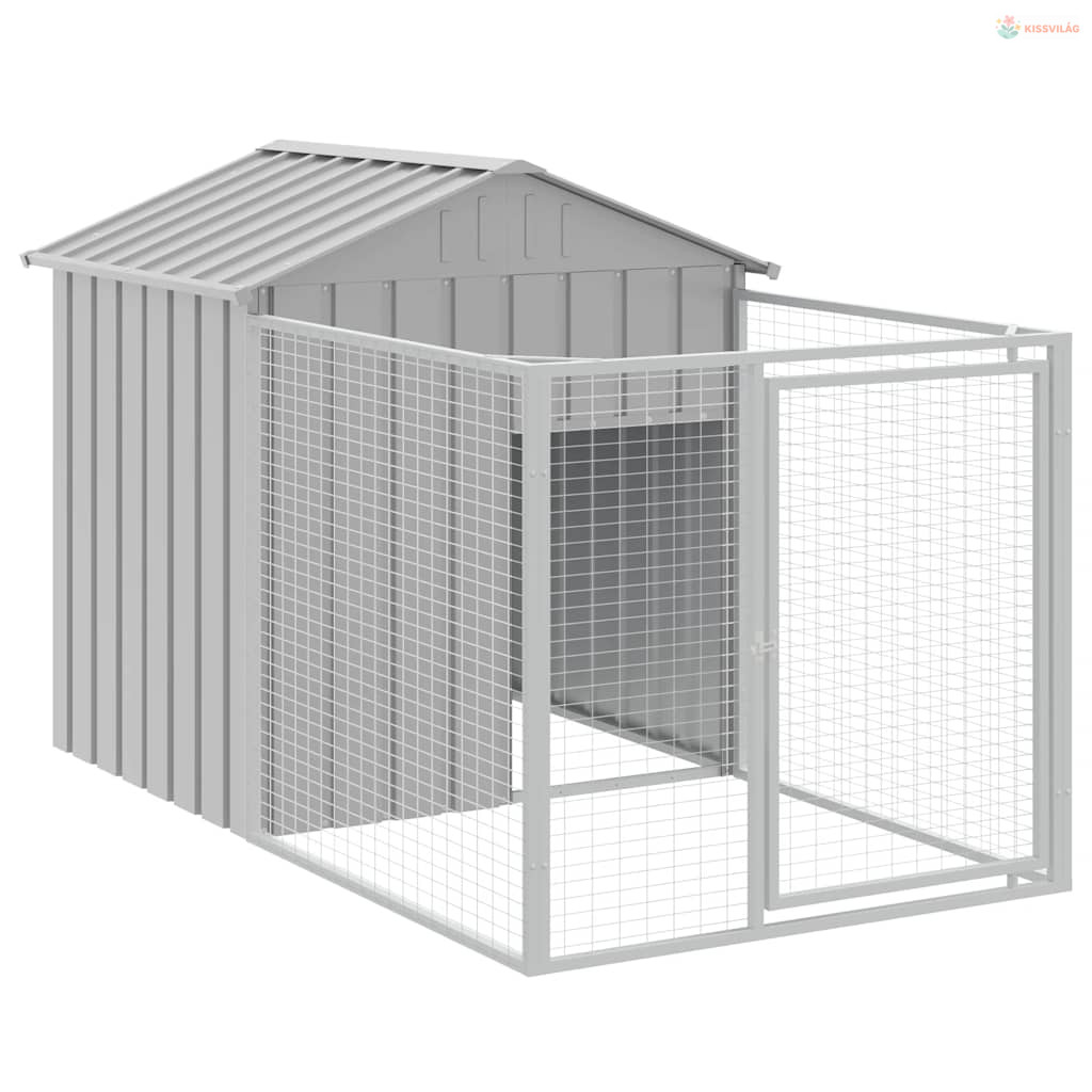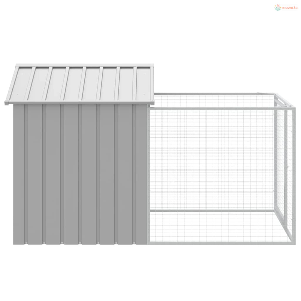 Világosszürke horganyzott acél kifutós kutyaház 117x201x123 cm
