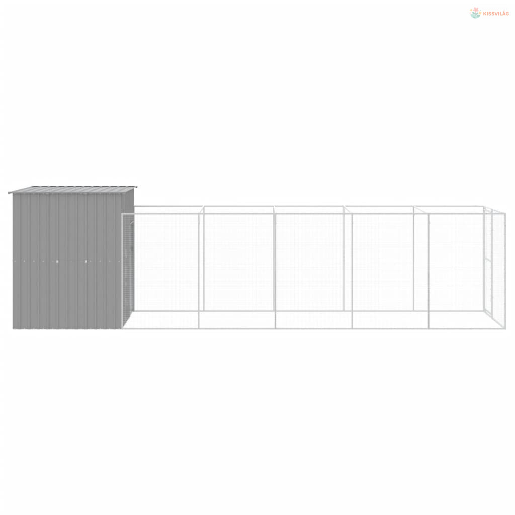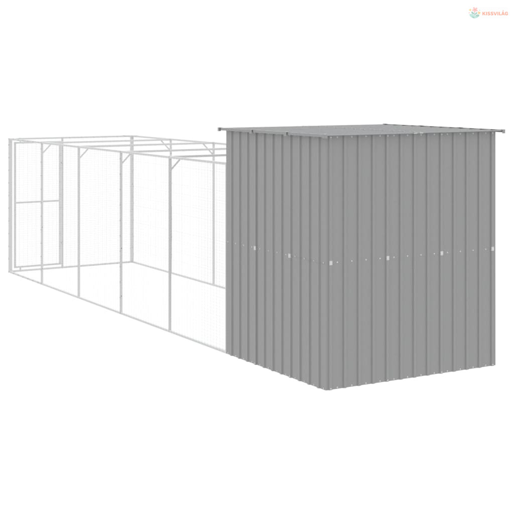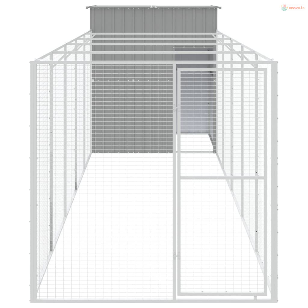 Világosszürke horganyzott acél kifutós kutyaház 165x659x181 cm