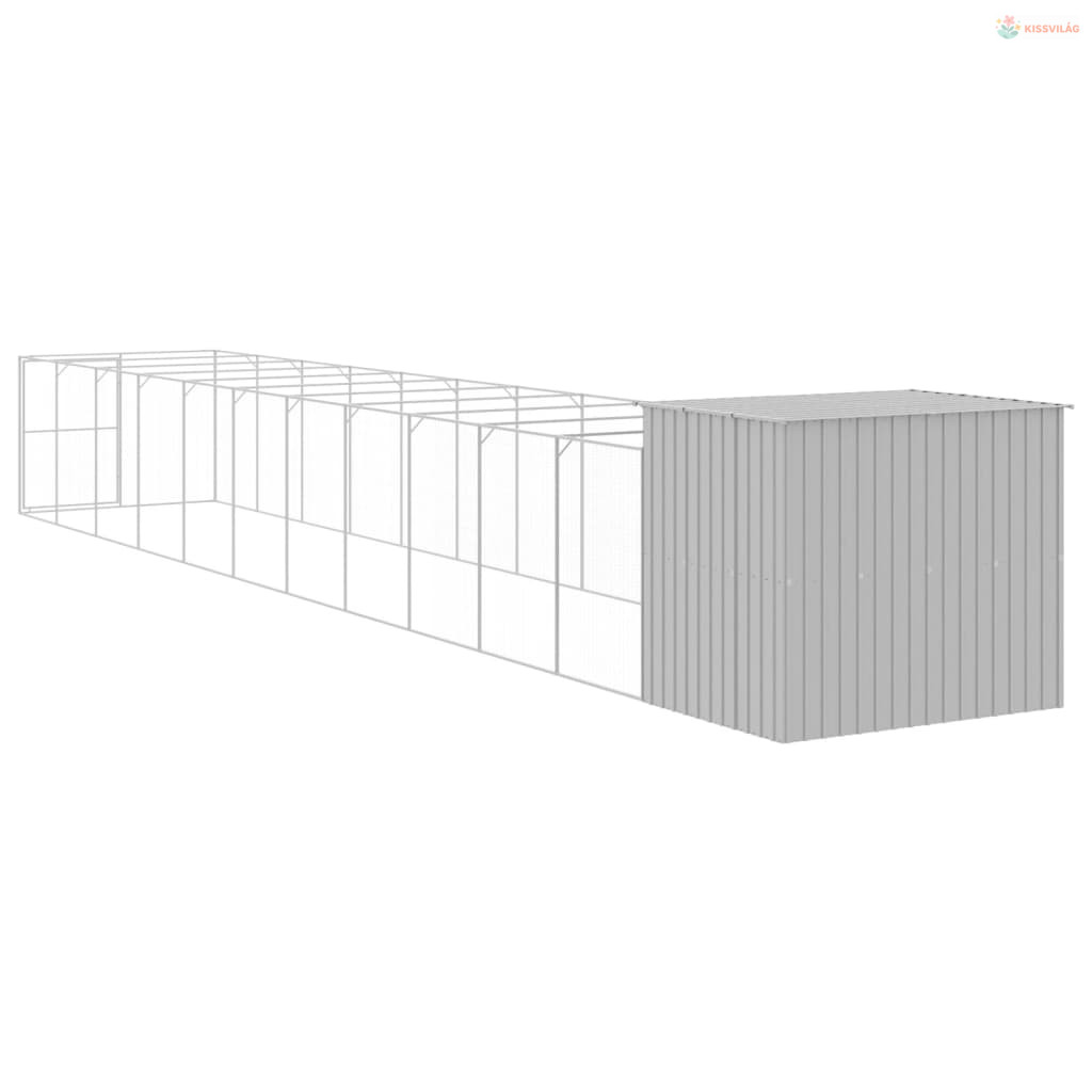 Világosszürke horganyzott acél tetős kutyakennel 214x1273x181cm