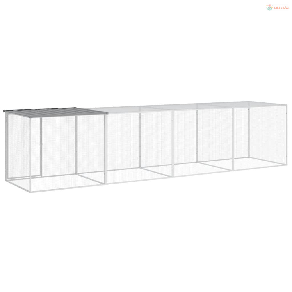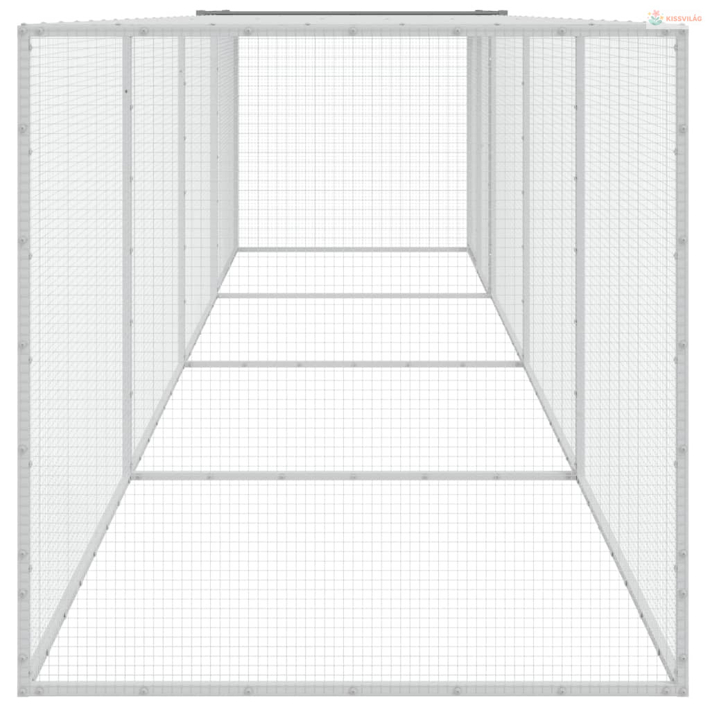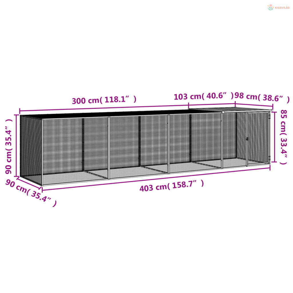 Világosszürke horganyzott acél tyúkketrec tetővel 403x98x90 cm
