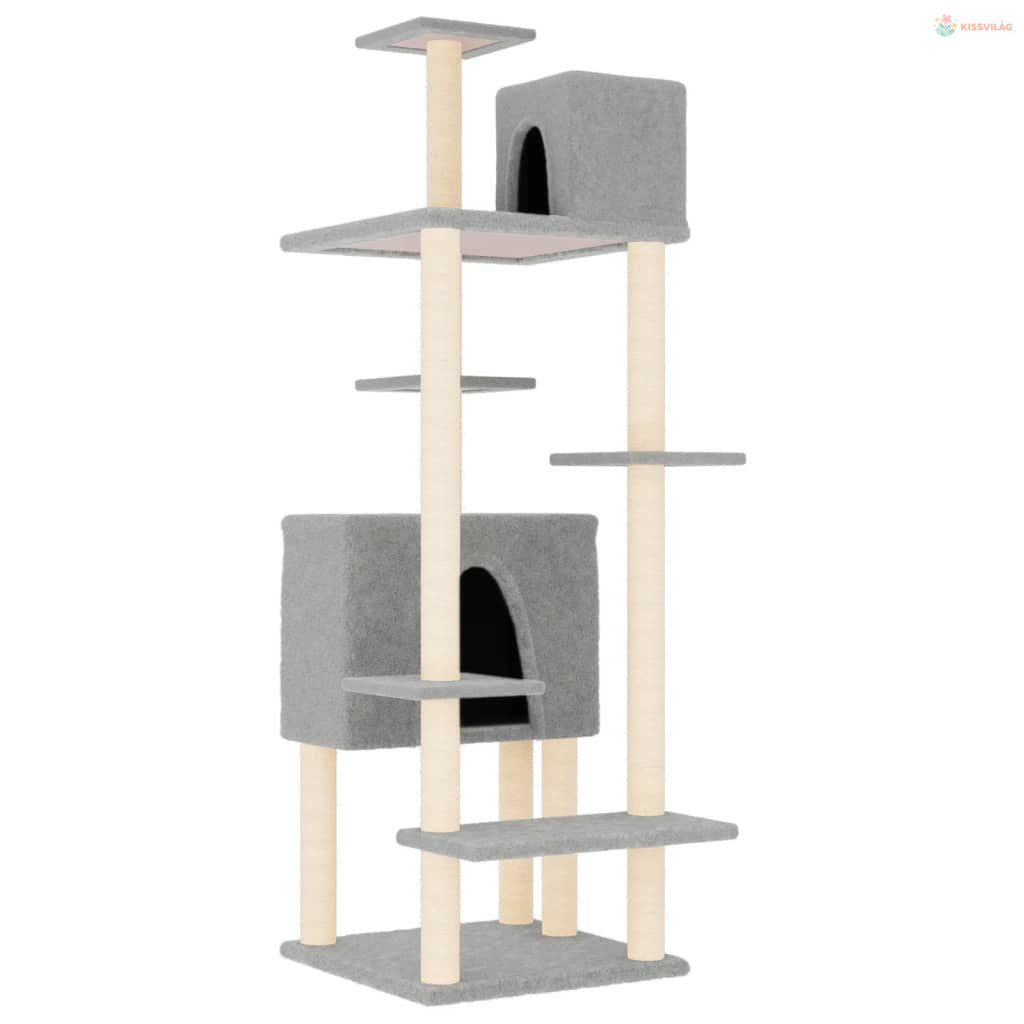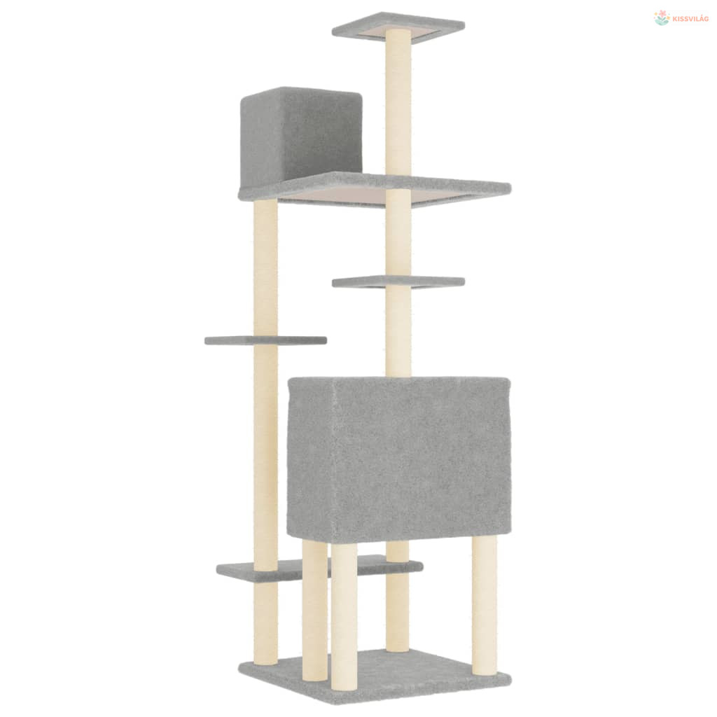 Világosszürke macskabútor szizál kaparófákkal 154 cm