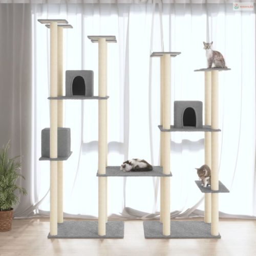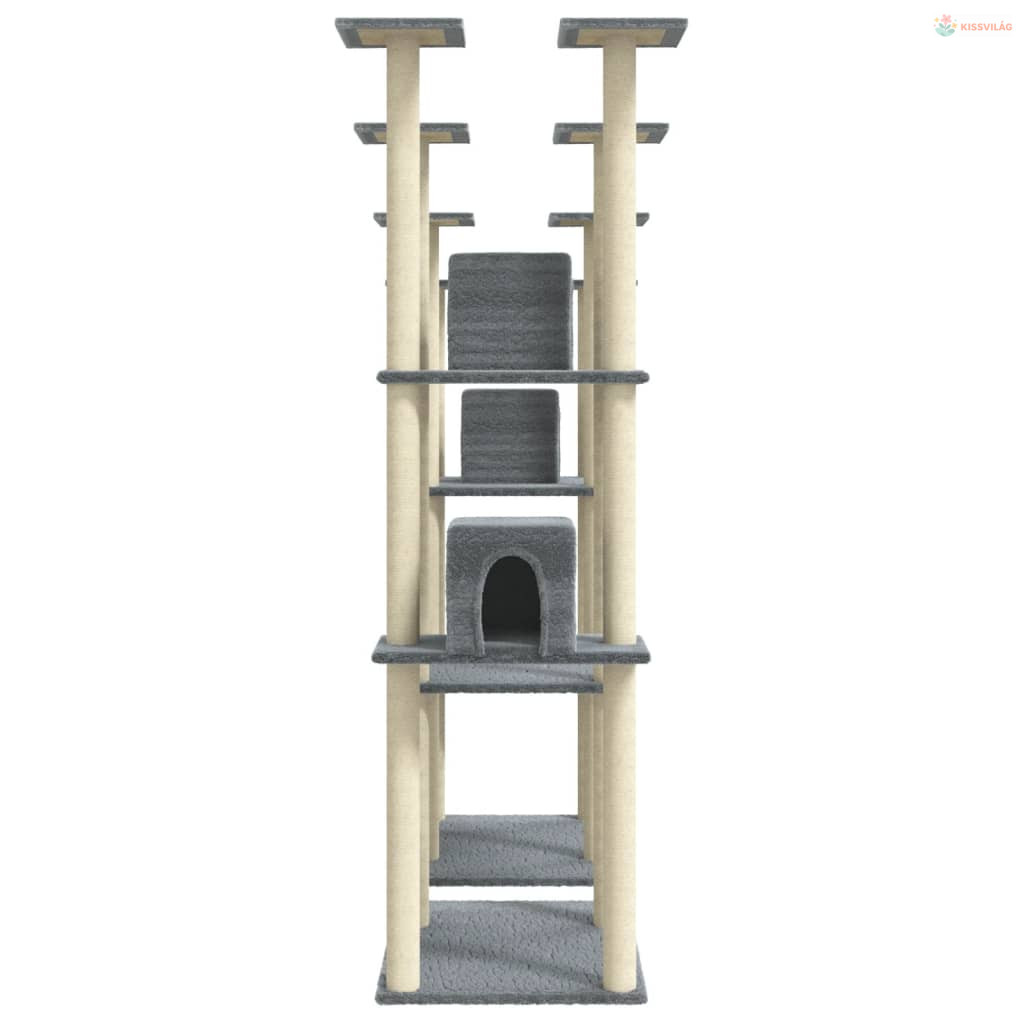 Világosszürke macskabútor szizál kaparófákkal 174 cm