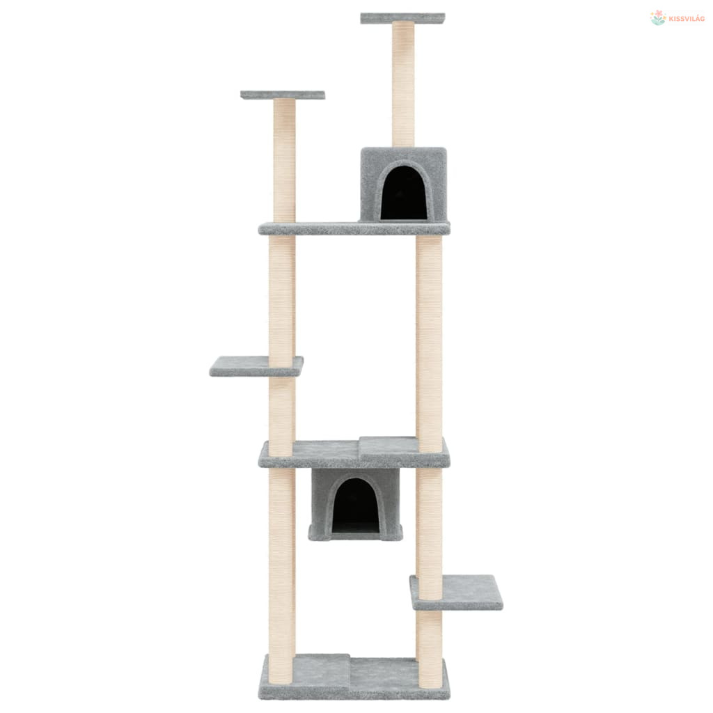 Világosszürke macskabútor szizál kaparófákkal 176 cm
