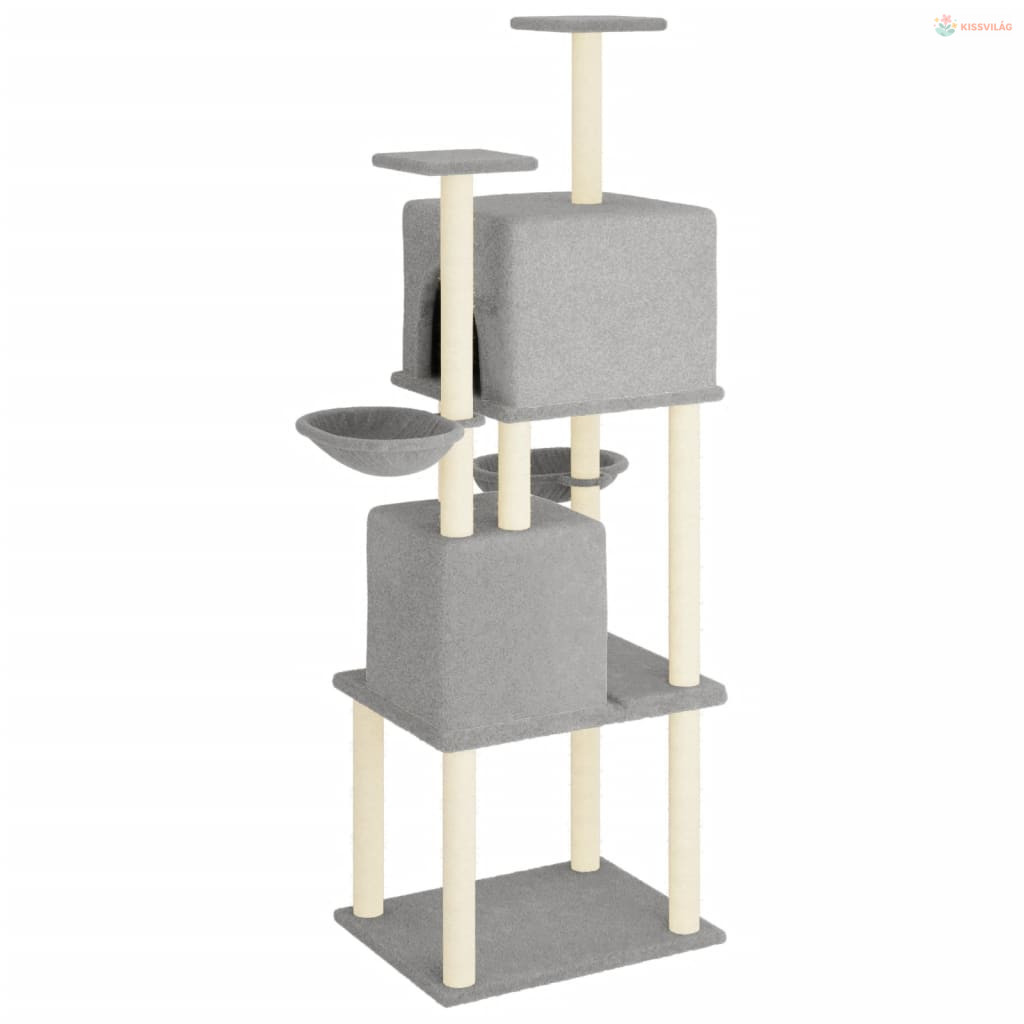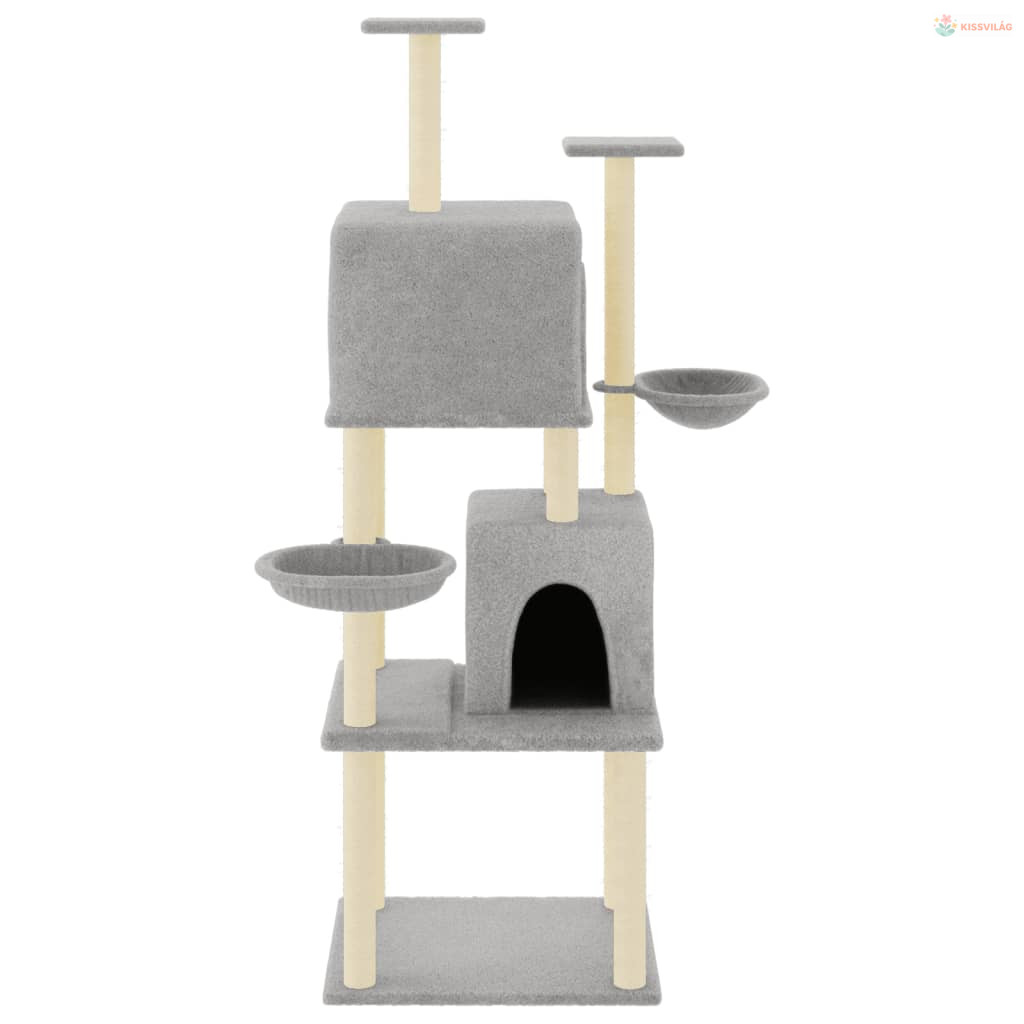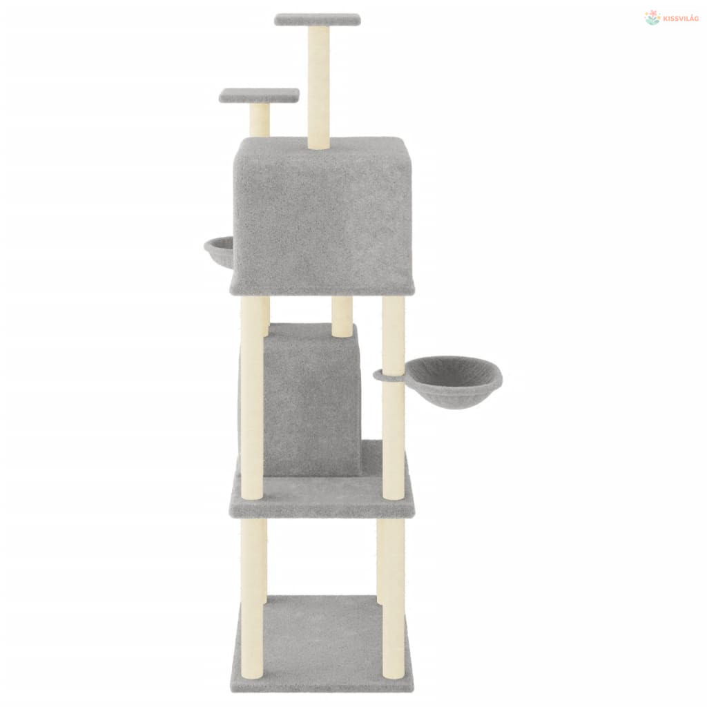 Világosszürke macskabútor szizál kaparófákkal 180 cm