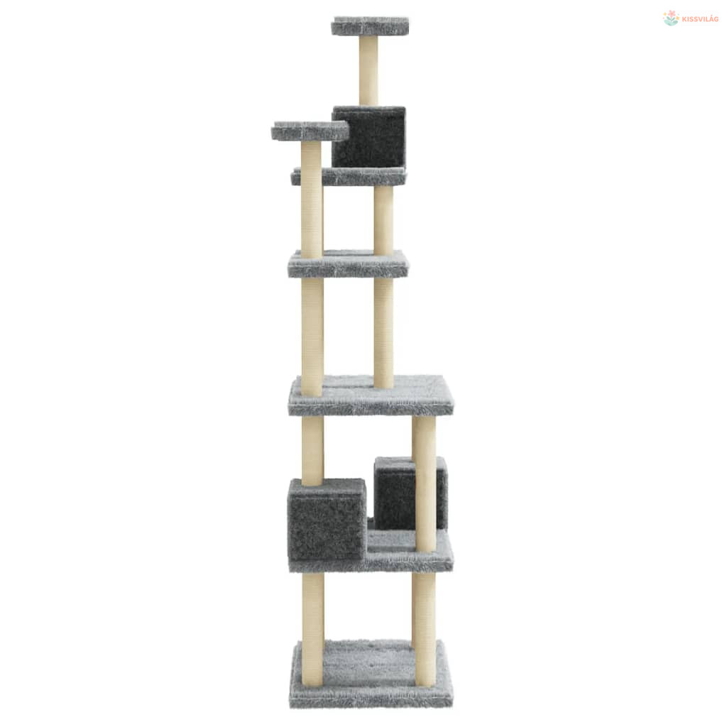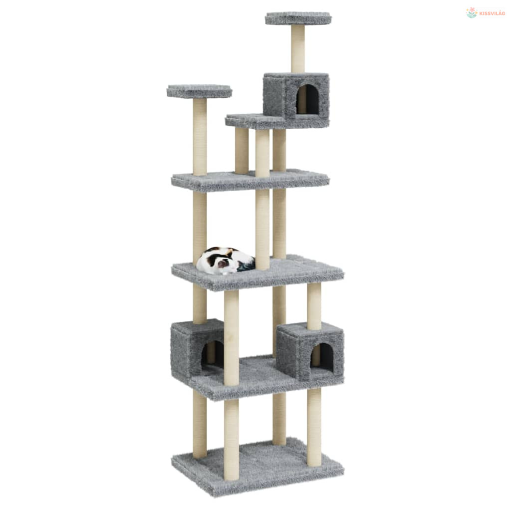 Világosszürke macskabútor szizál kaparófákkal 188 cm