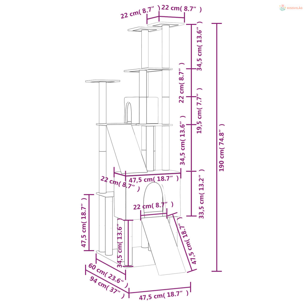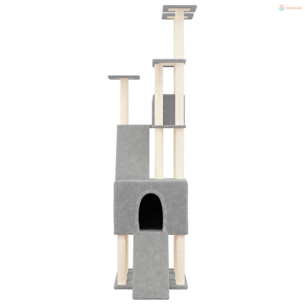 Világosszürke macskabútor szizál kaparófákkal 190 cm