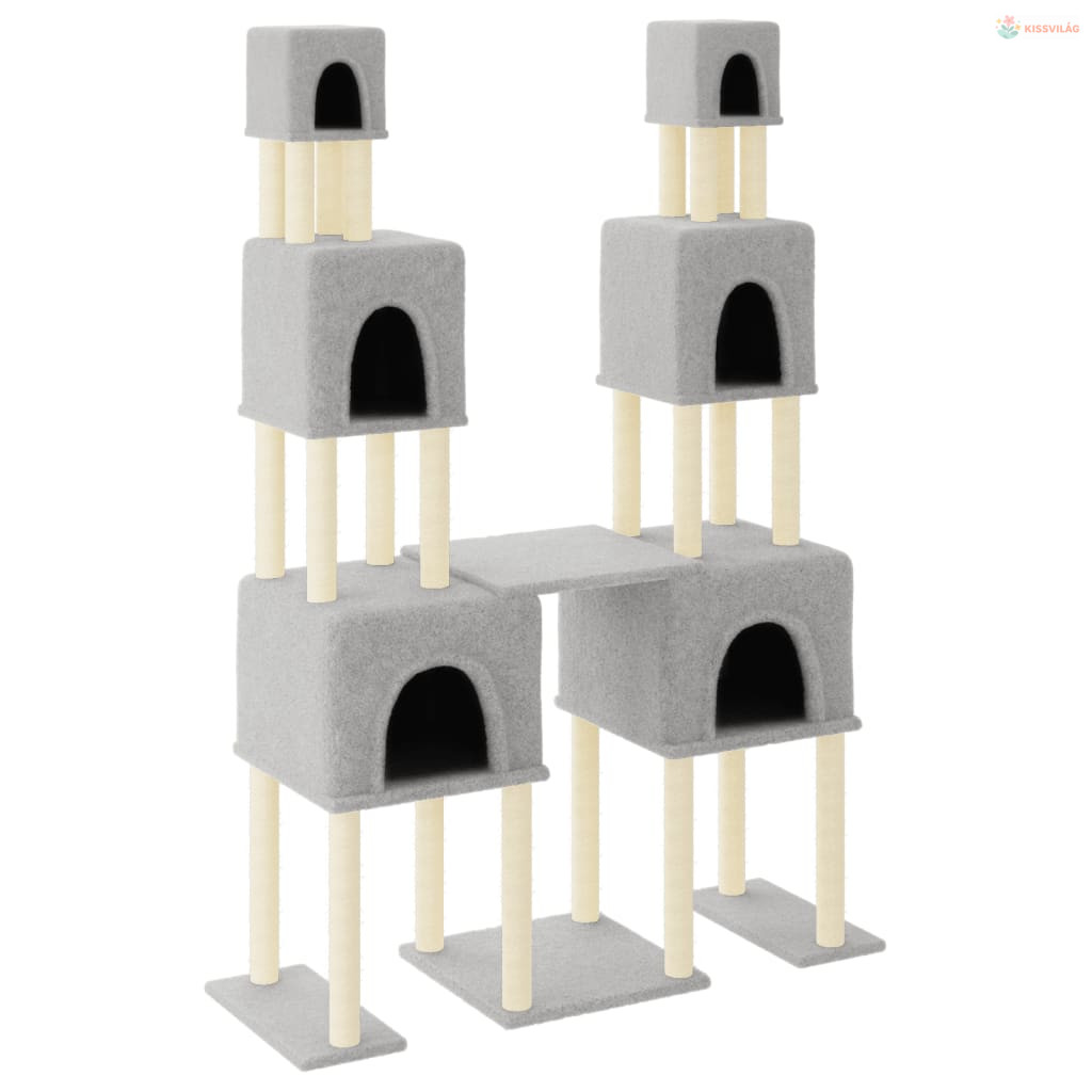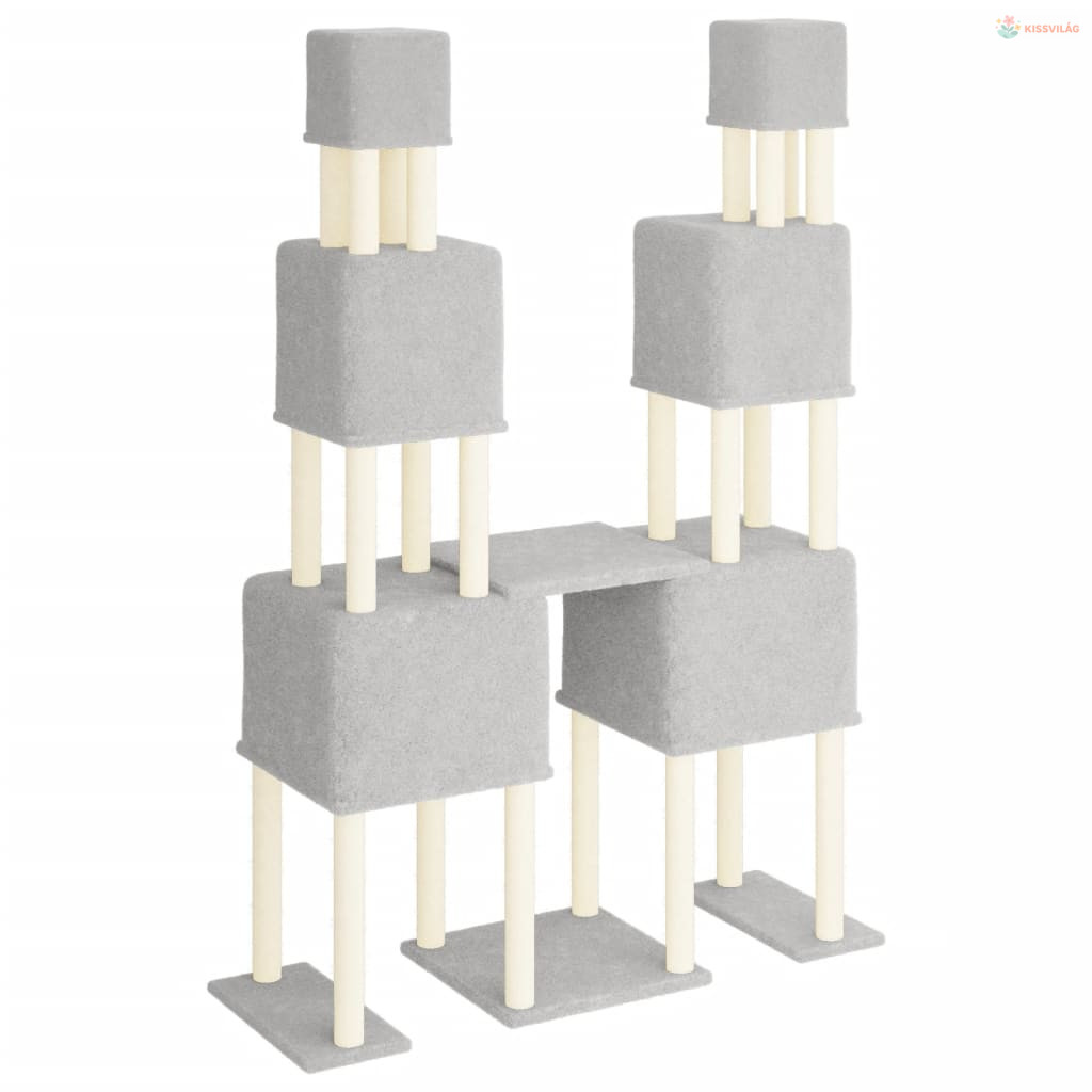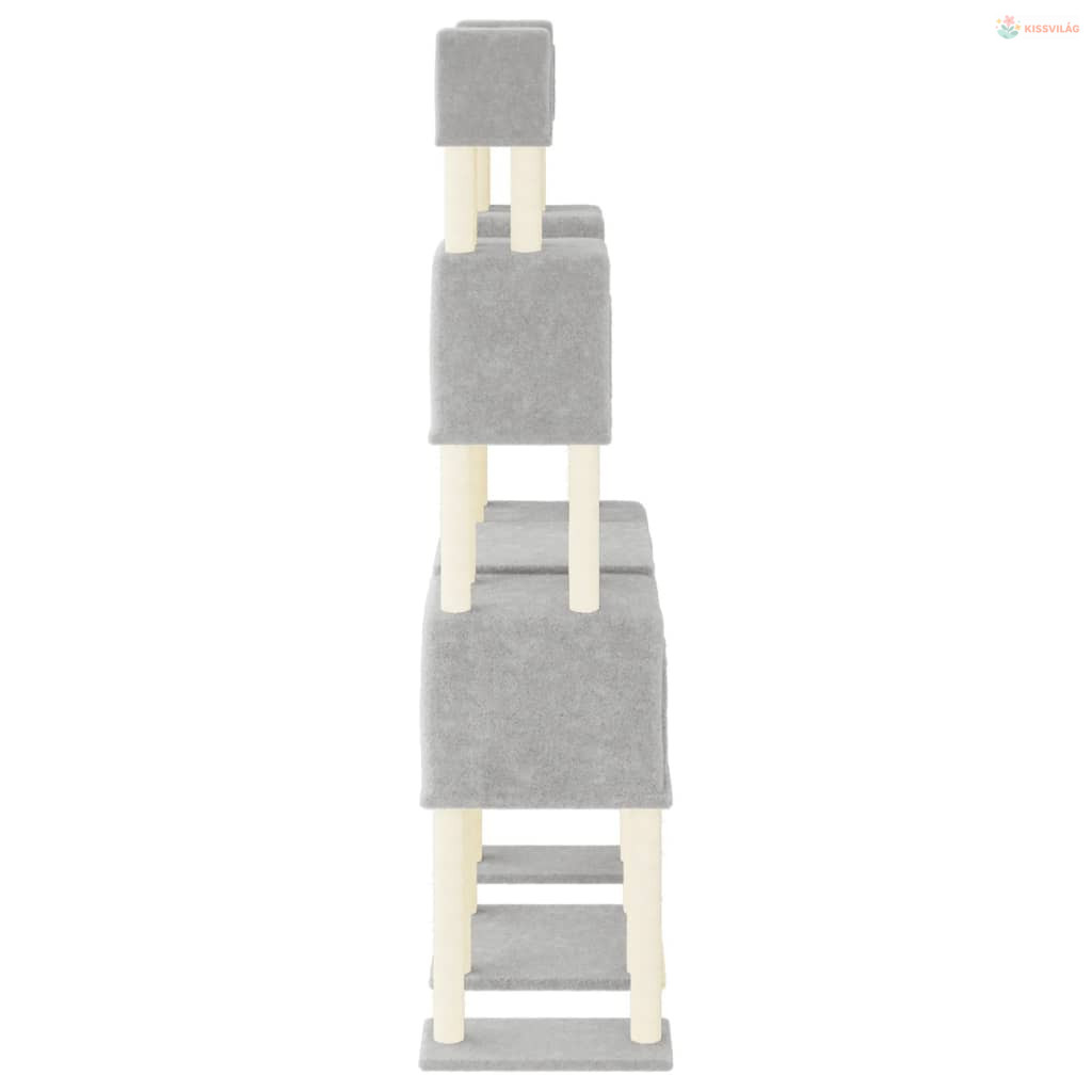 Világosszürke macskabútor szizál kaparófákkal 199 cm
