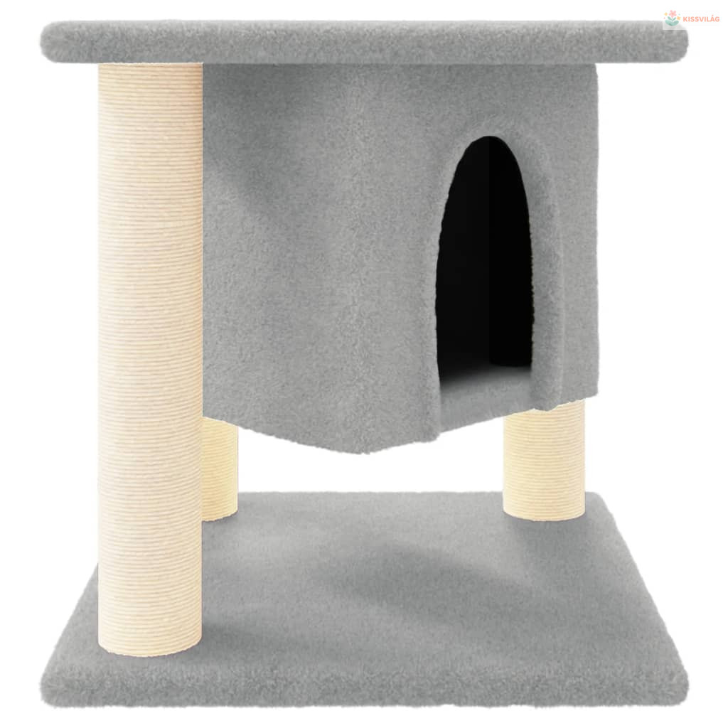 Világosszürke macskabútor szizál kaparófákkal 37 cm