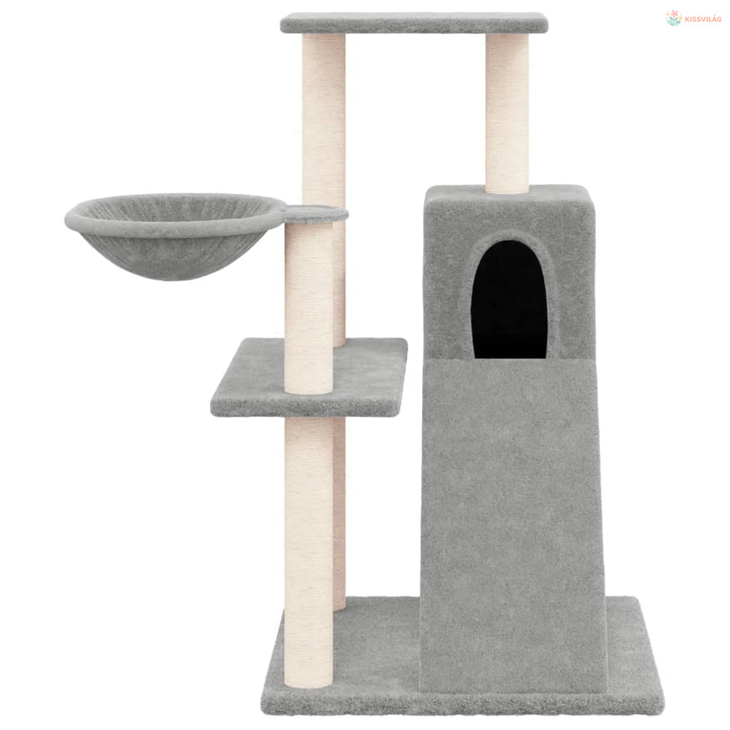 Világosszürke macskabútor szizál kaparófákkal 82 cm