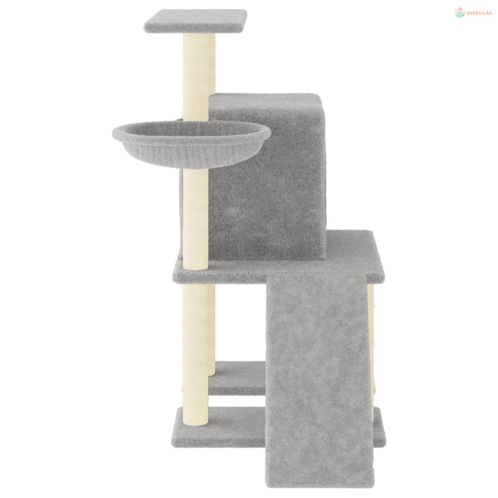 Világosszürke macskabútor szizál kaparófákkal 96,5 cm