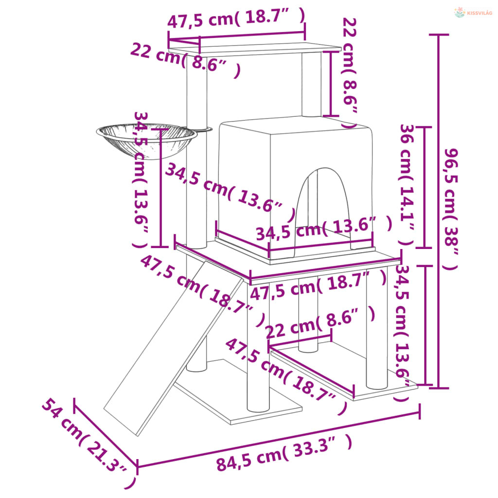 • Minden egyben macskatorony: A többszintes macskabútor egy házzal, egy létrával, egy kosárral és több emelvénnyel lett ellátva, tökéletes helyet biztosítva macskáinak a mászáshoz, kaparáshoz, bujkáláshoz és pihenéshez.