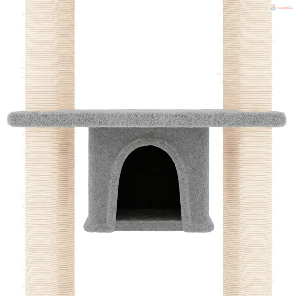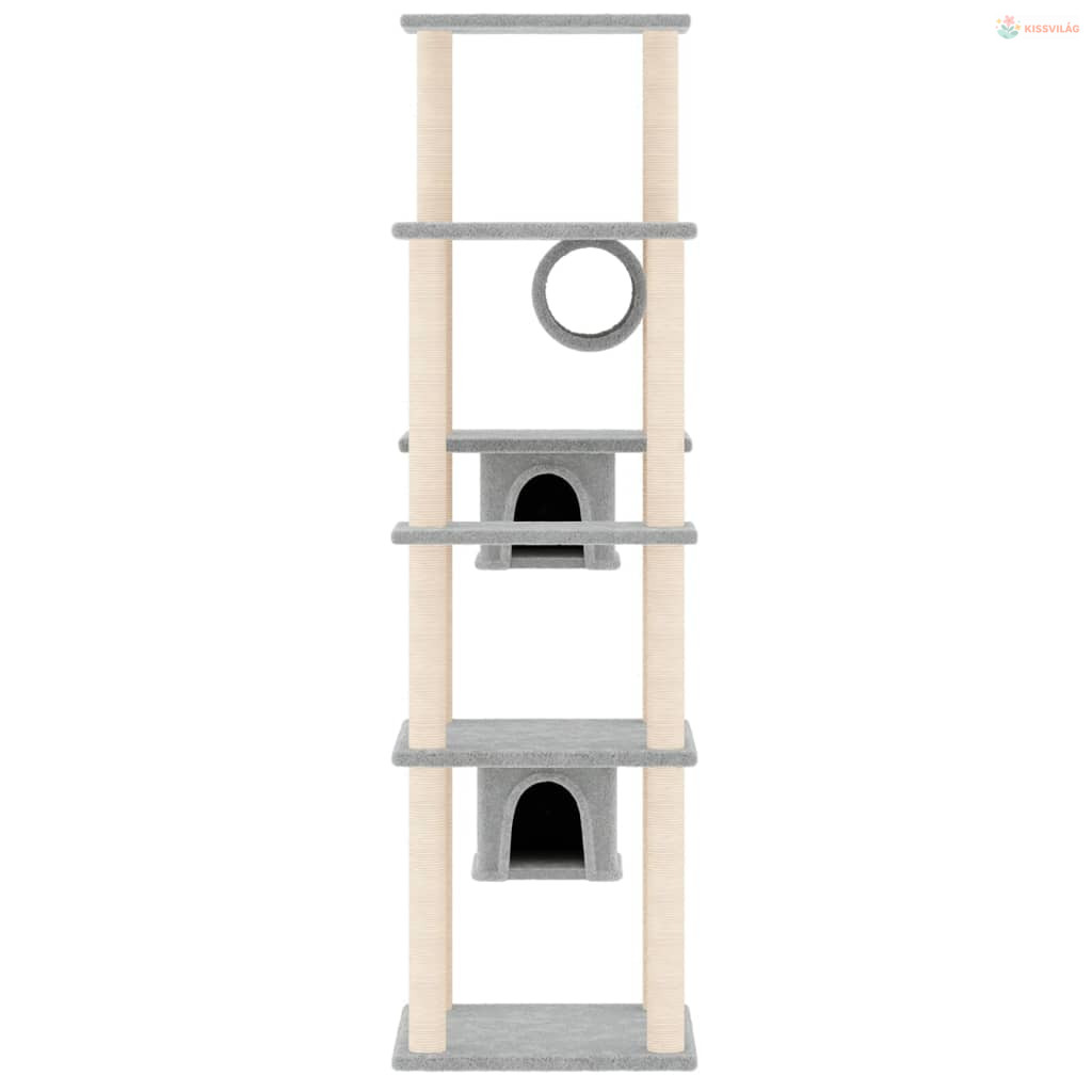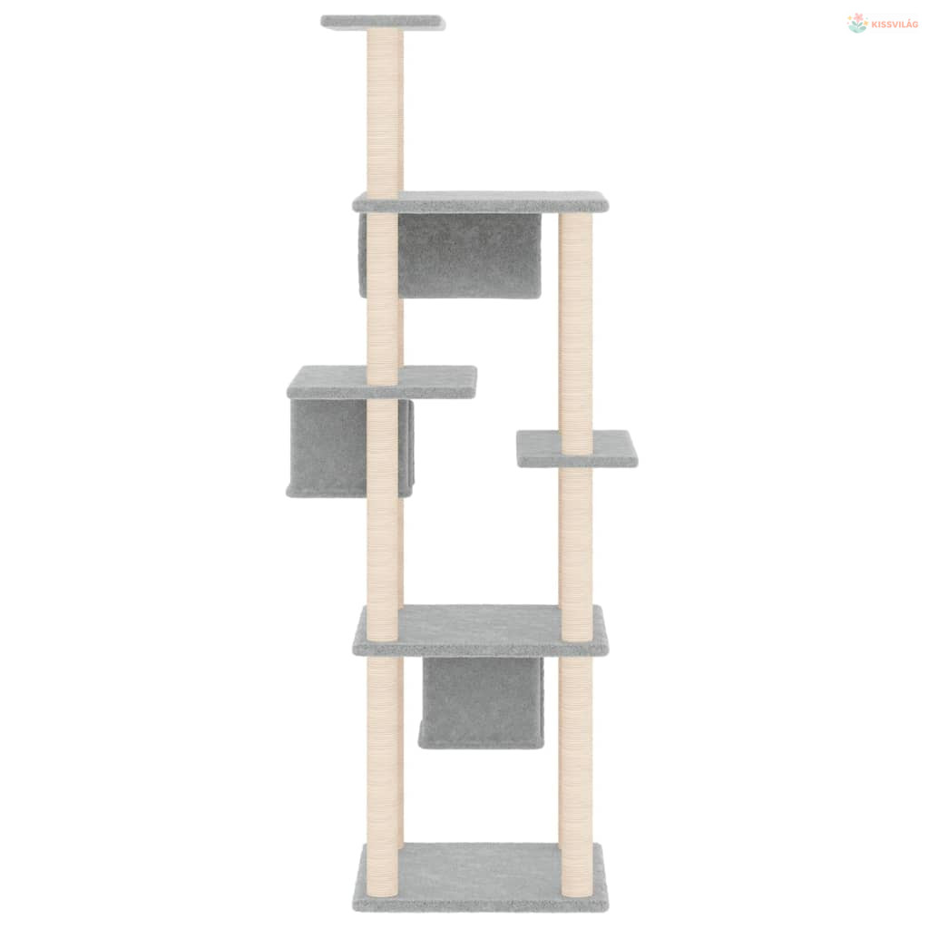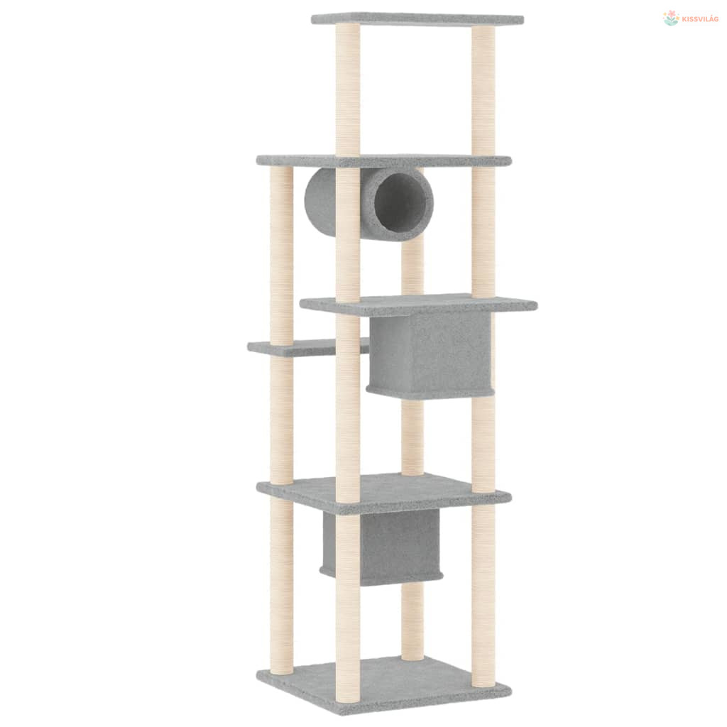 Világosszürke macskabútor szizál kaparóoszlopokkal 169 cm