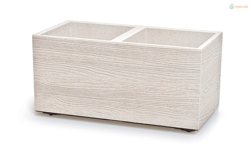 Moduláris növénytartó beltérre és kültérre, minőségi műanyag kivitel, stílusos, fát imitáló kialakítás. 2 belső rekesz belső béléssel, válaszfallal elválasztva, egymásra rakható kivitel, görgők a könnyű mozgatáshoz.