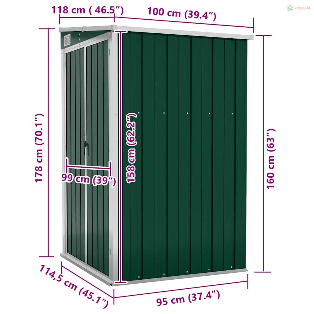 Zöld acél falhoz erősíthető kerti fészer 118 x 100 x 178 cm