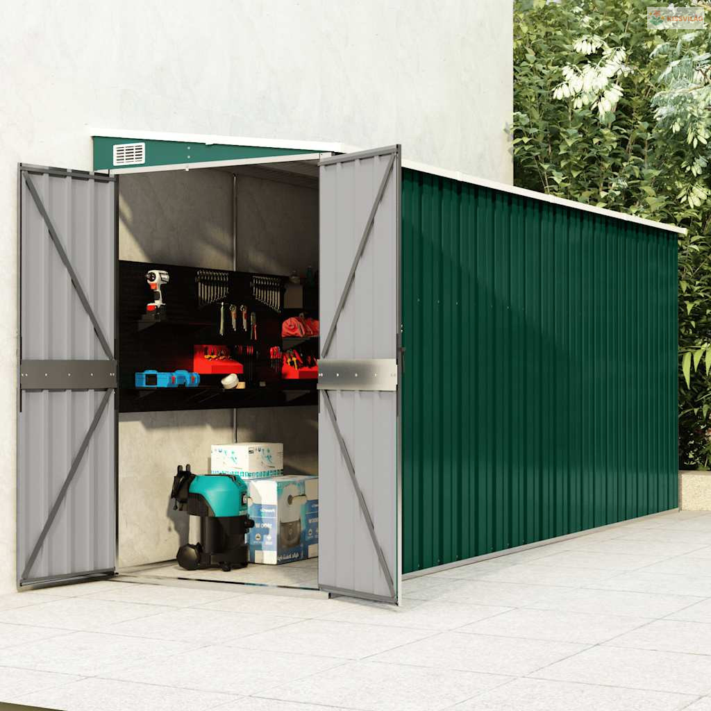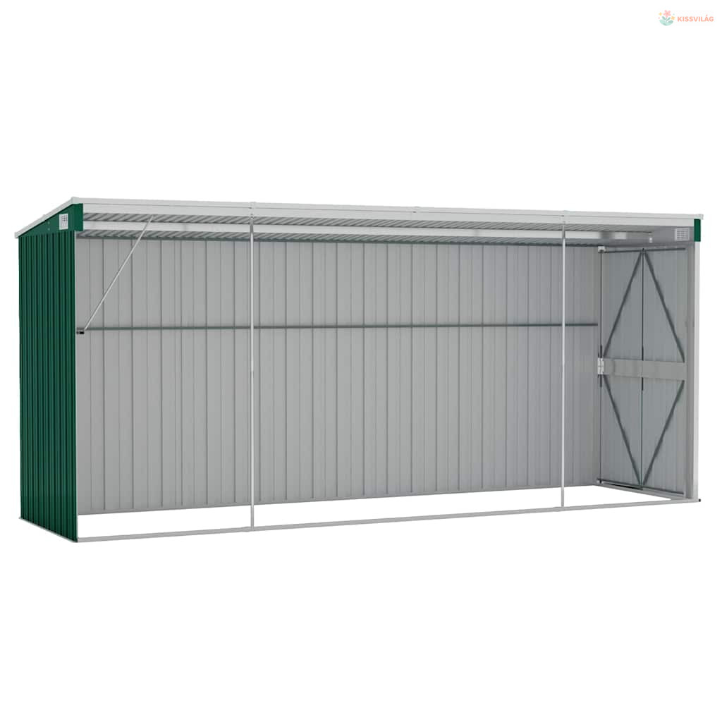 Zöld acél falhoz erősíthető kerti fészer 118 x 382 x 178 cm