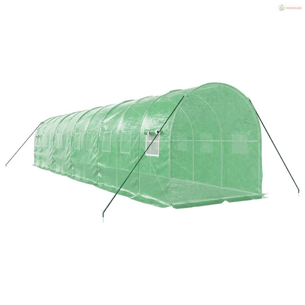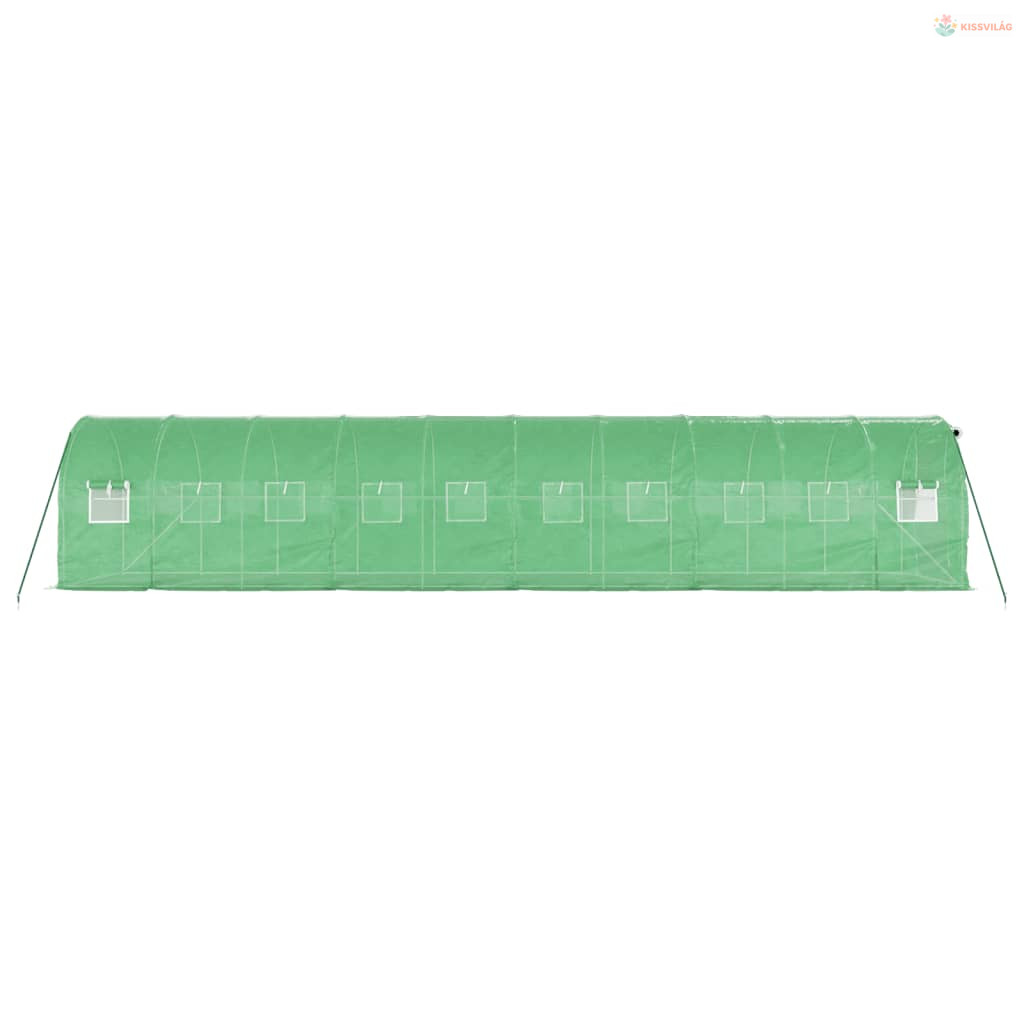 Zöld acélvázas melegház 20 m² 10 x 2 x 2 m