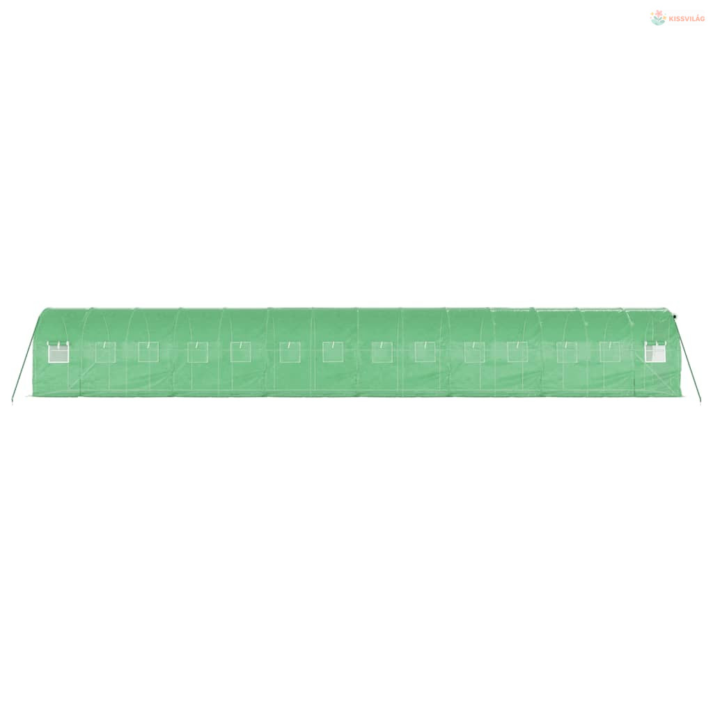 Zöld acélvázas melegház 28 m² 14 x 2 x 2 m