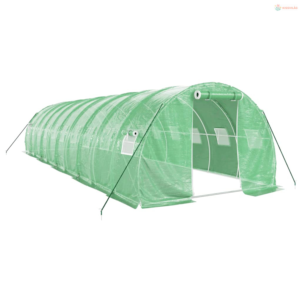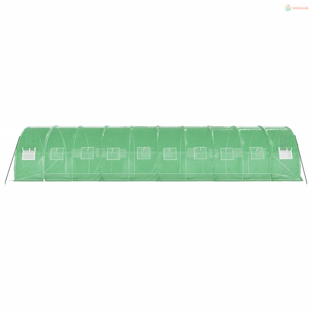 Zöld acélvázas melegház 30 m² 10 x 3 x 2 m