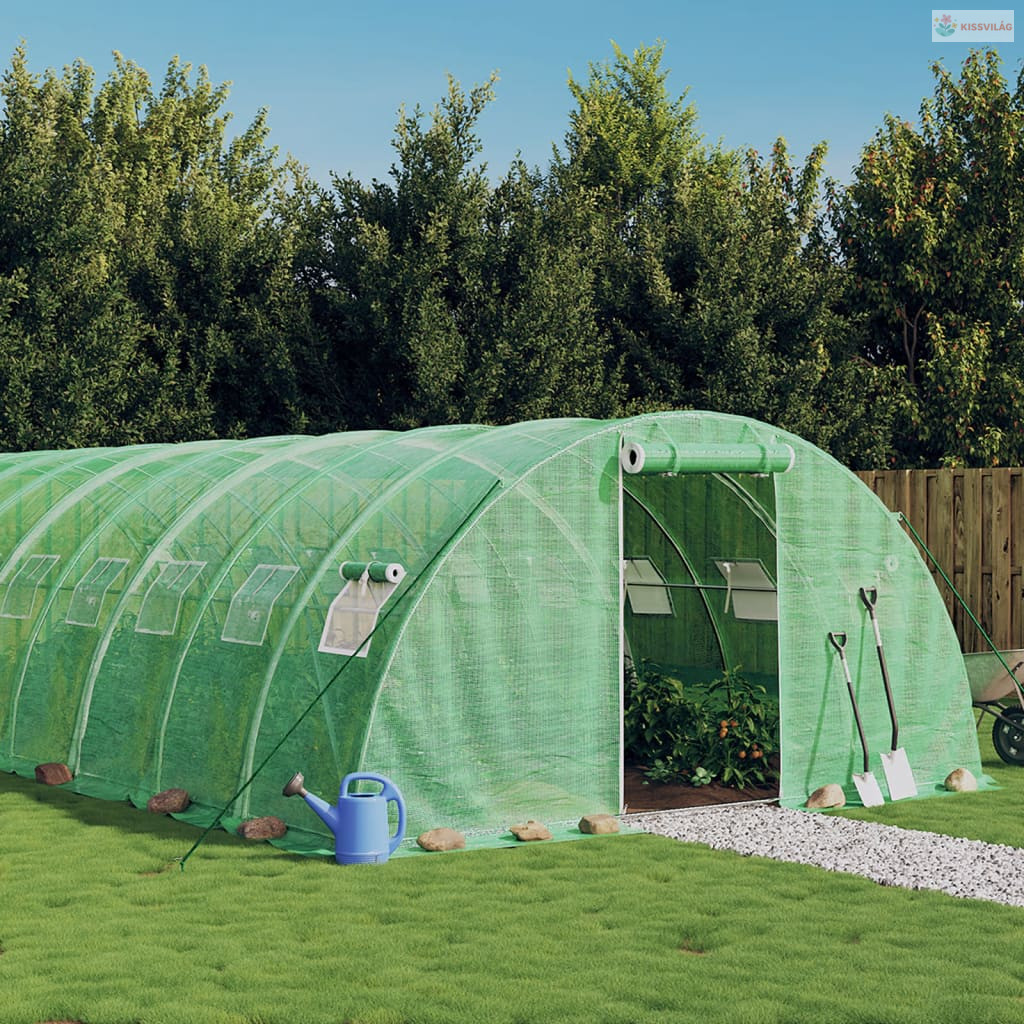Zöld acélvázas melegház 32 m² 8 x 4 x 2 m