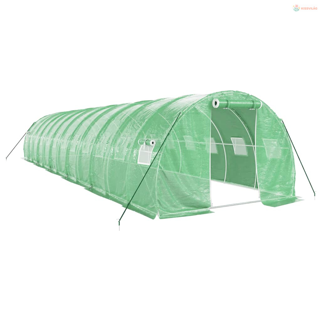 Zöld acélvázas melegház 36 m² 12 x 3 x 2 m
