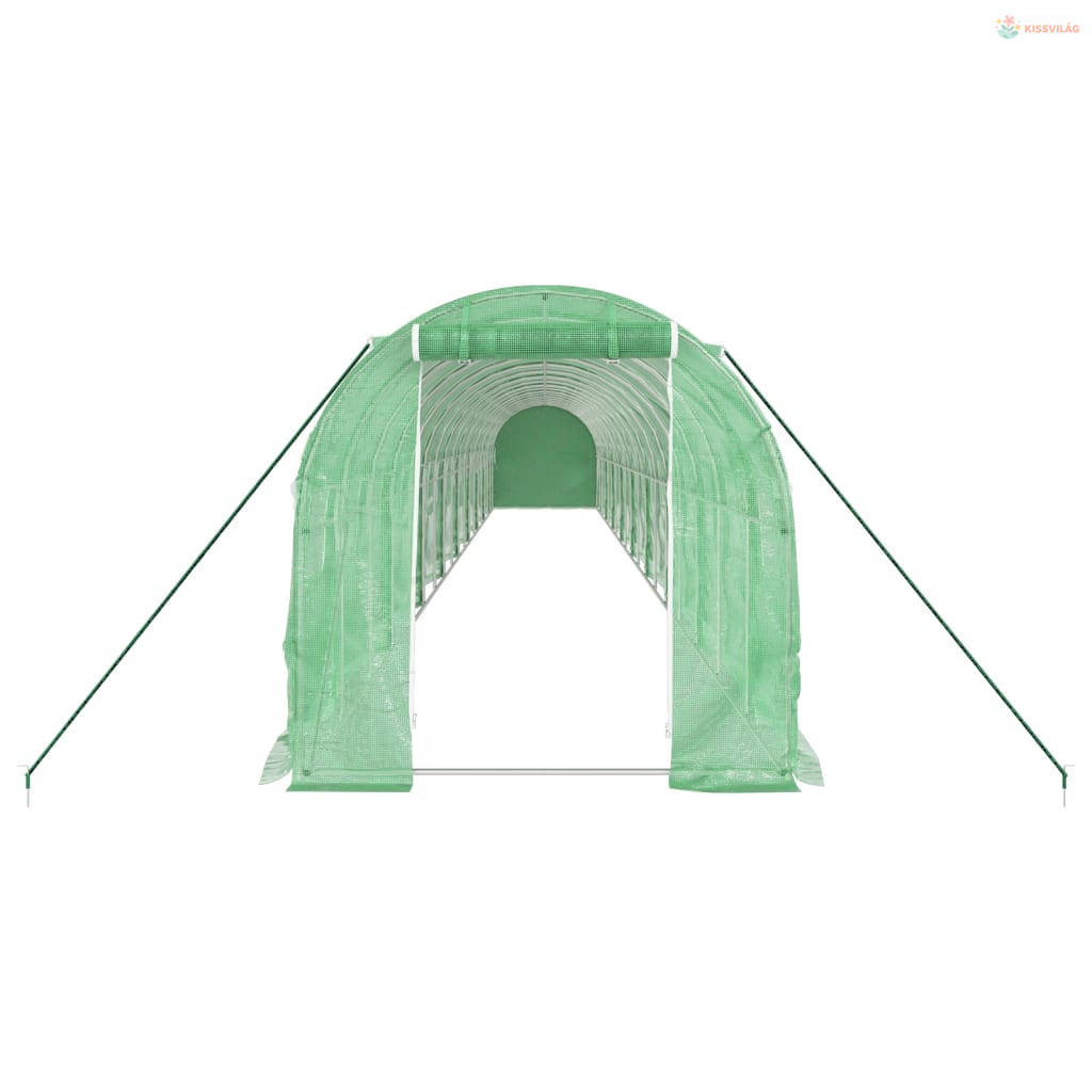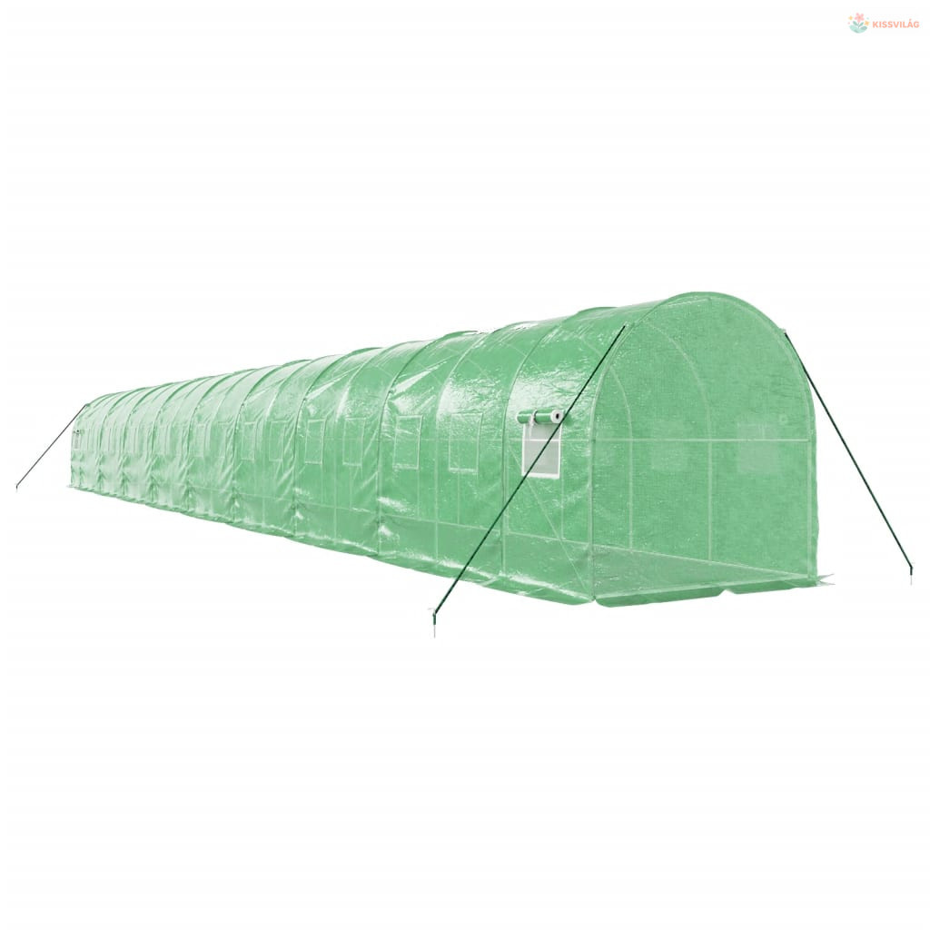 Zöld acélvázas melegház 36 m² 18 x 2 x 2 m