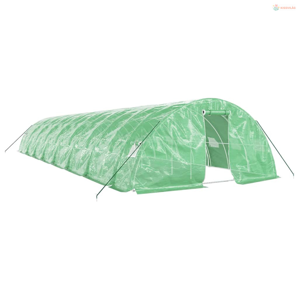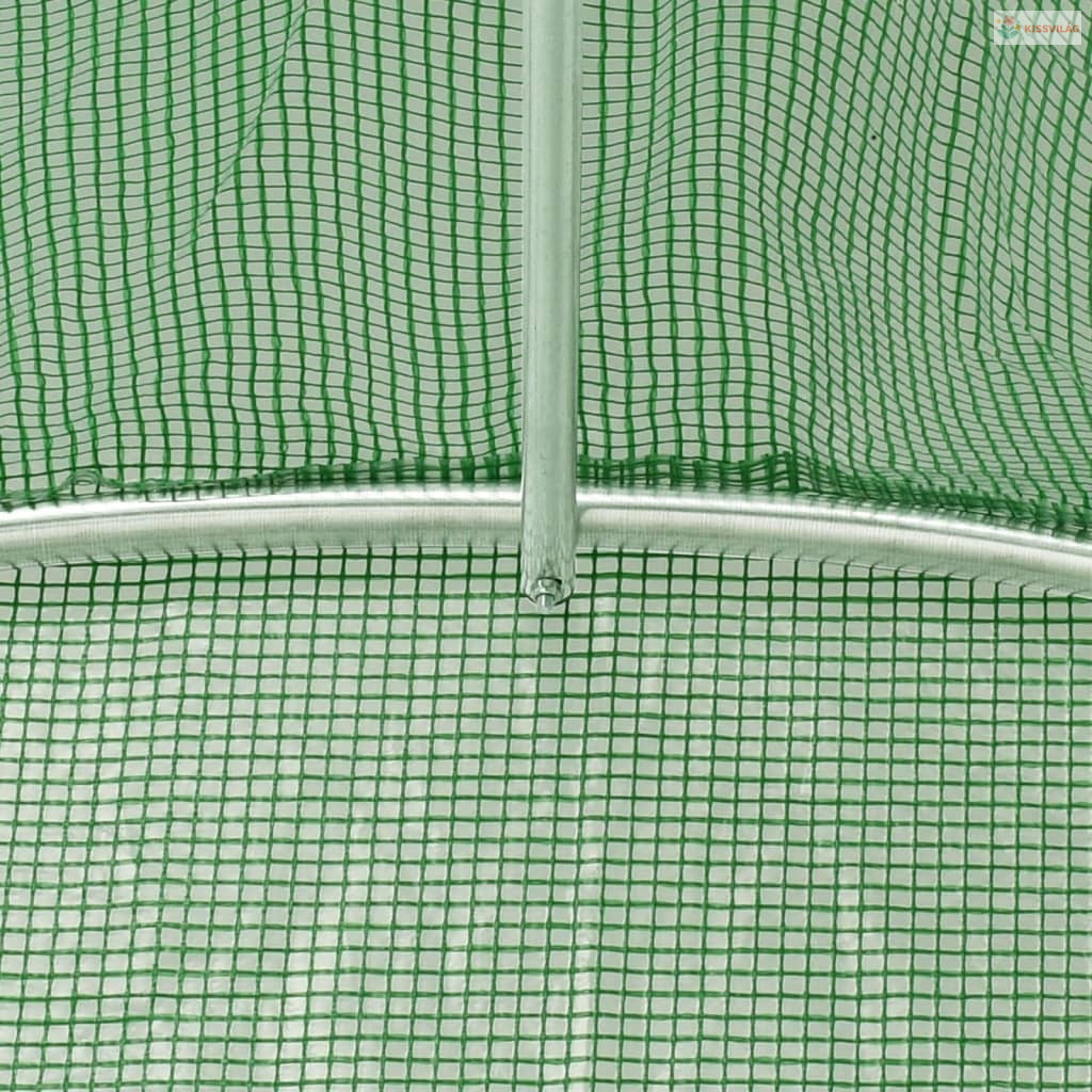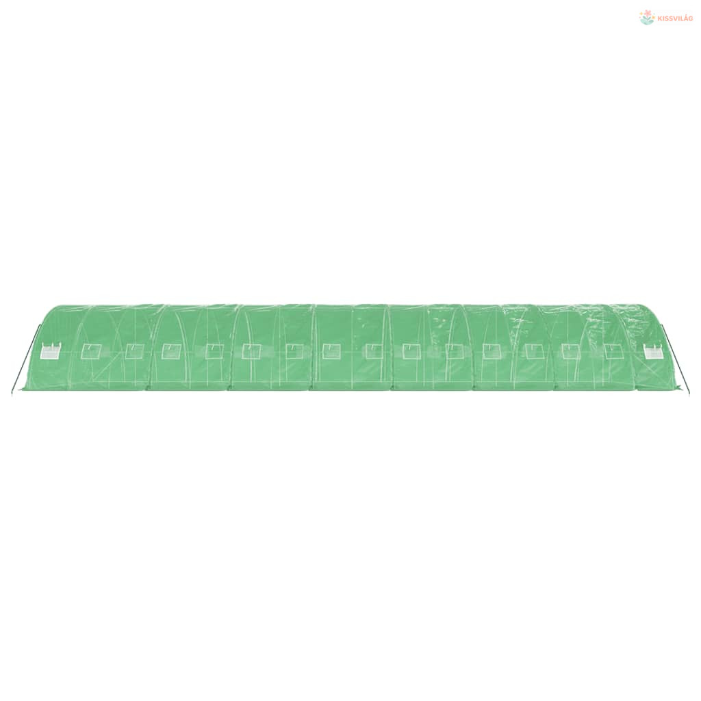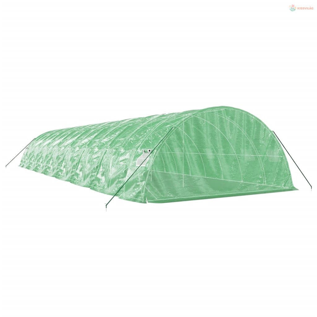 Zöld acélvázas melegház 80 m² 16 x 5 x 2,3 m
