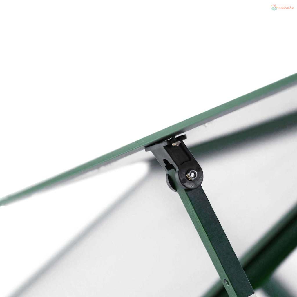 • Átgondolt kialakítás: A beépített ereszcsatorna rendszer hatékonyan vezeti el a vizet, a szellőző ablak pedig 5 állítható szöggel lett kialakítva a levegő keringtetése érdekében a páratartalom és a hőmérséklet egyensúlyának érdekében. A csuklós ajtó megkönnyíti a bejárást a melegházba a mindennapi használathoz.