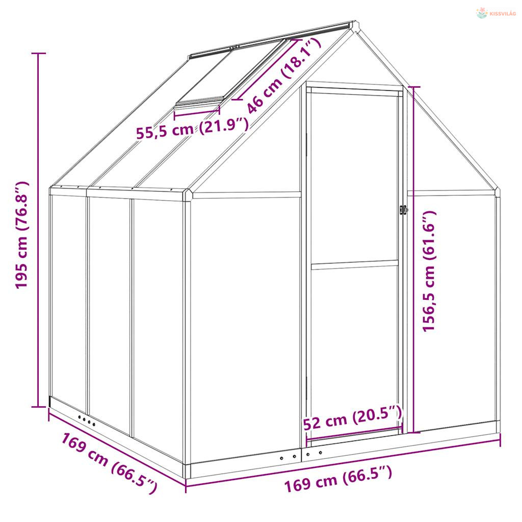 • Időjárásálló és masszív váz: Az üvegház váza rozsda- és időjárásálló alumíniumból készült a nagy szélállóság és stabilitás érdekében.