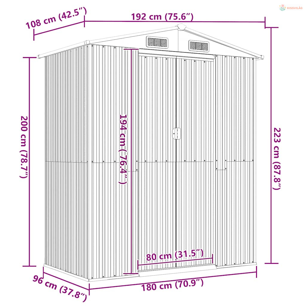 • Tartós alapanyag: A kerti fészer horganyzott acélból készült, ami ellenáll a rozsdásodásnak és biztosítja a hosszútávú használatot.