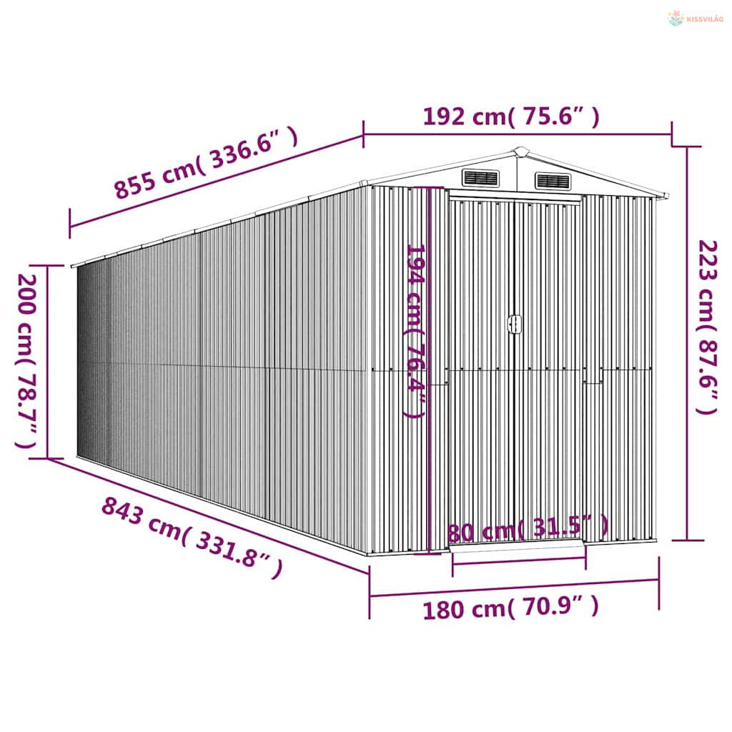 Zöld horganyzott acél kerti fészer 192x855x223 cm