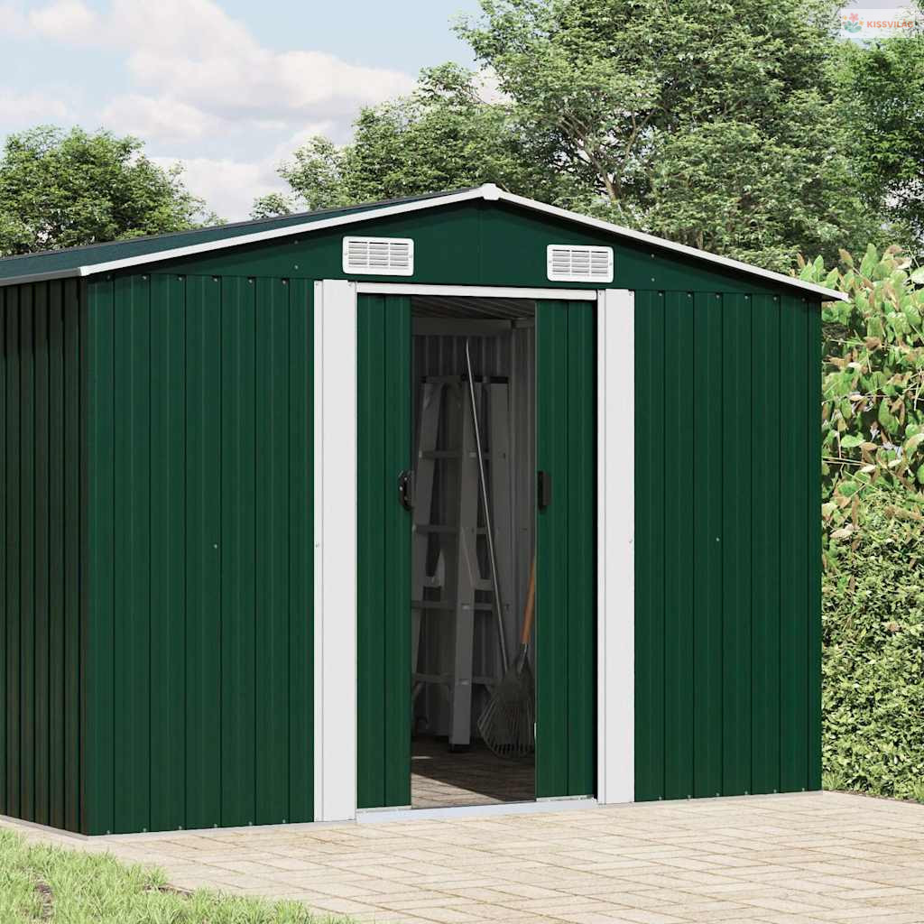 Ez a tárolóház szellőzőnyílásokkal rendelkezik, amelyek kiváló szellőzést biztosítanak. Az elülső dupla tolóajtók könnyű be- és kijutást tesznek lehetővé. A horganyzott acél szerkezetnek köszönhetően a szerszámtároló tartós és erős, nem korrodál, és nem befolyásolják a kedvezőtlen időjárási körülmények.