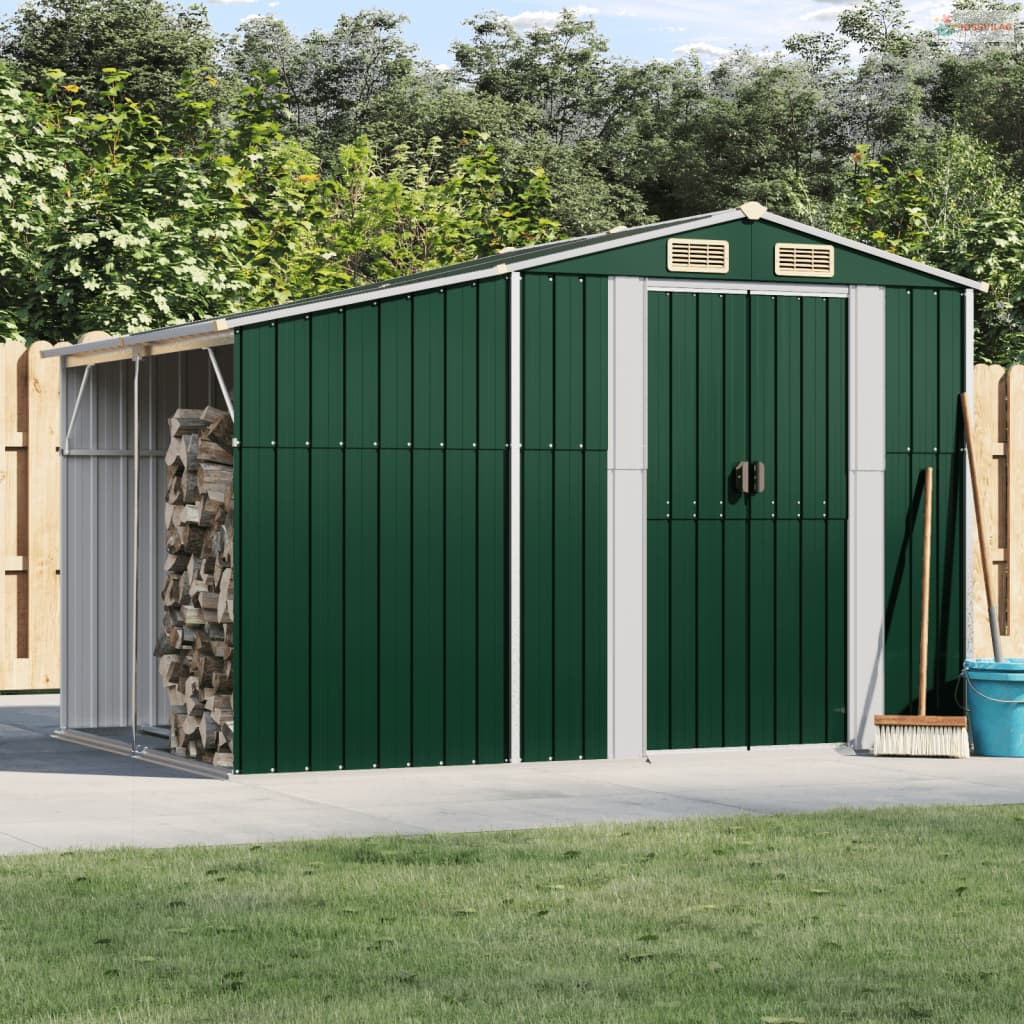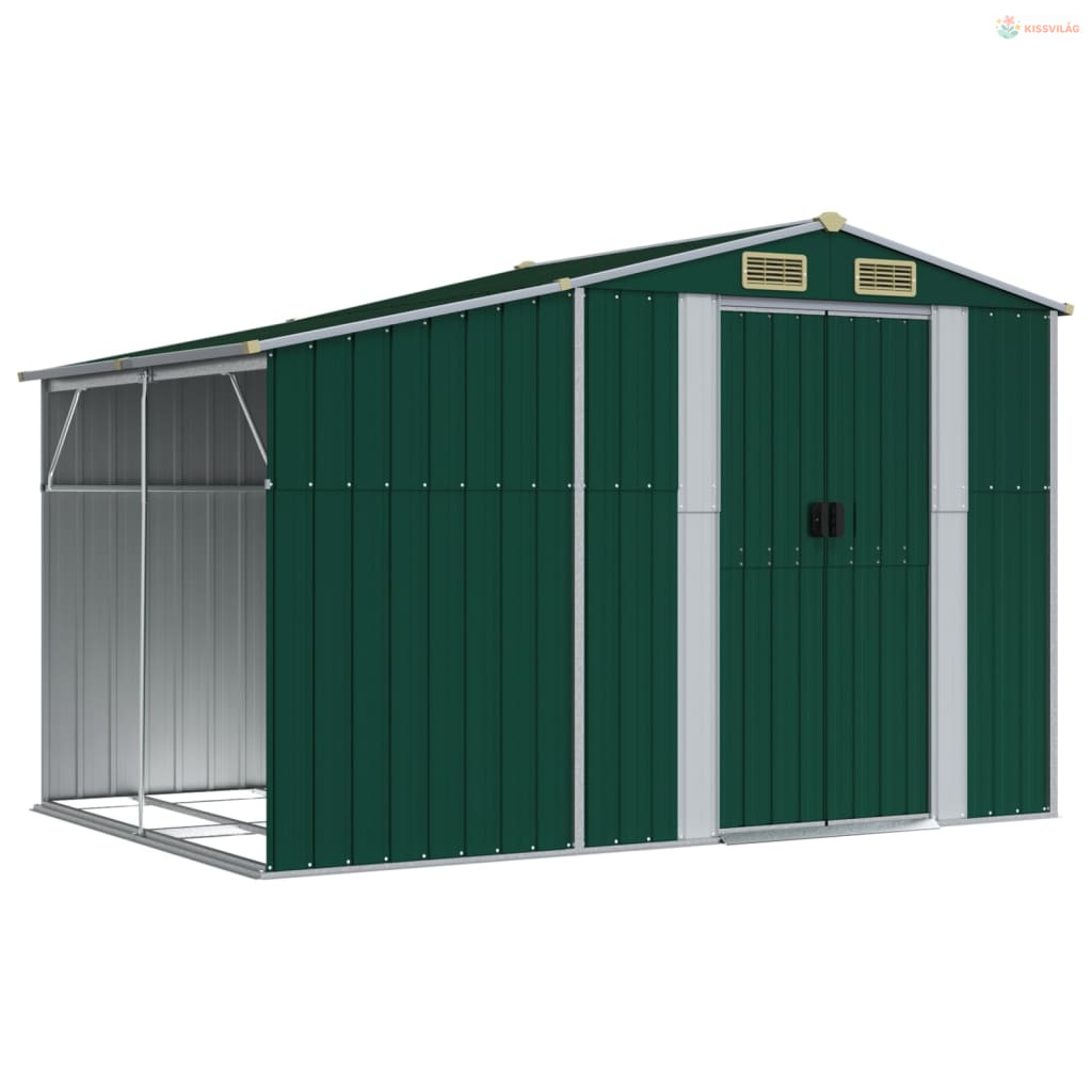 Zöld horganyzott acél kerti fészer 277 x 192,5 x 179 cm