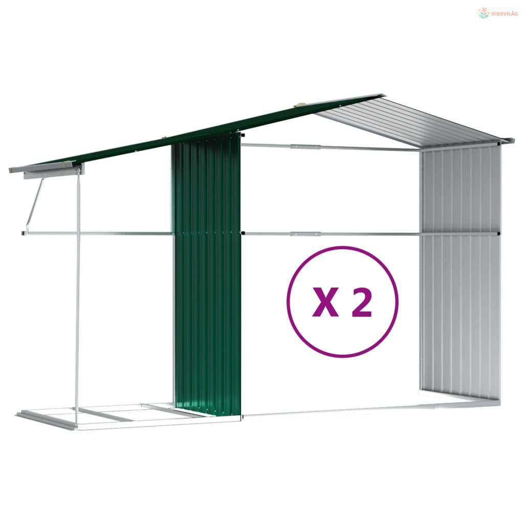Zöld horganyzott acél kerti fészer 277 x 279 x 179 cm