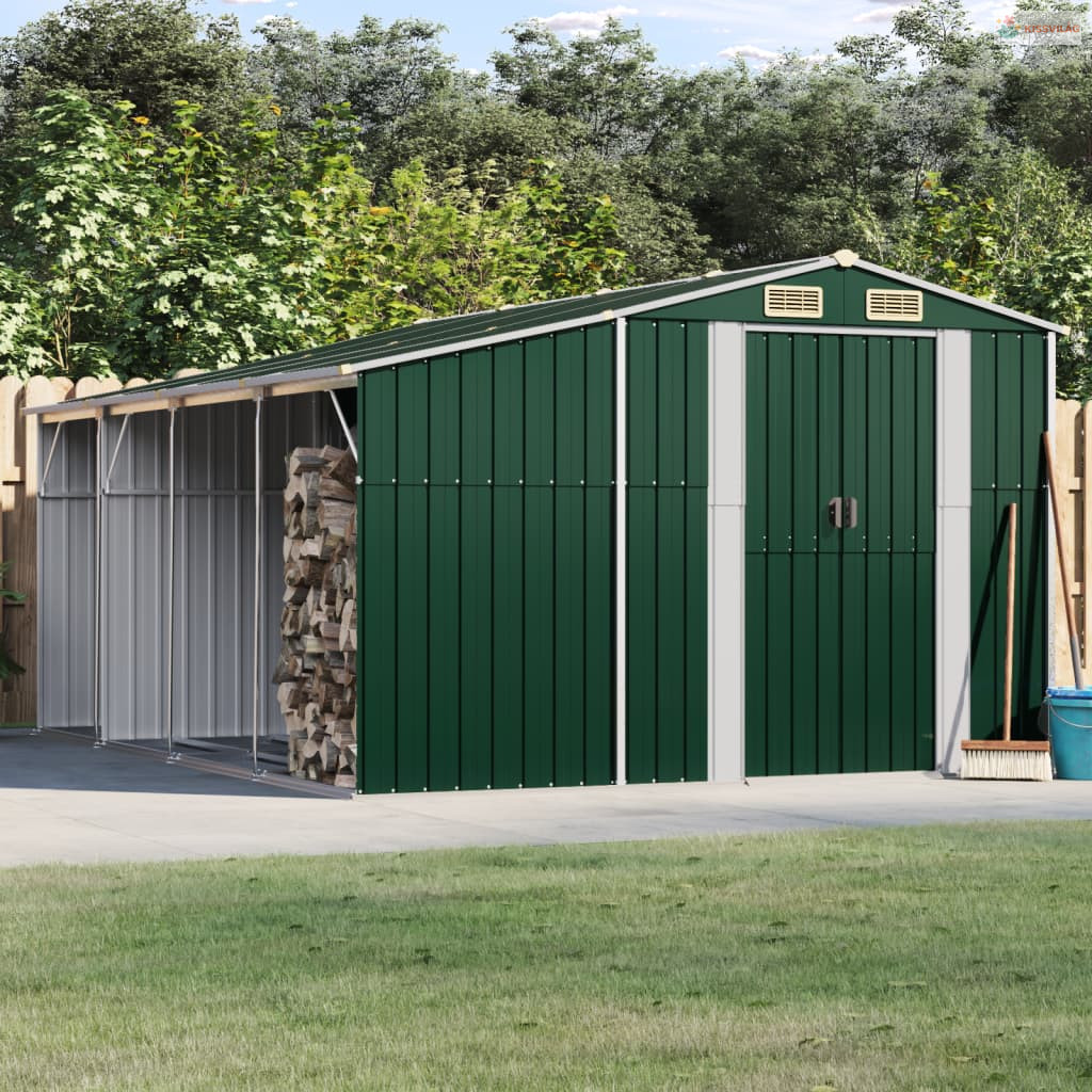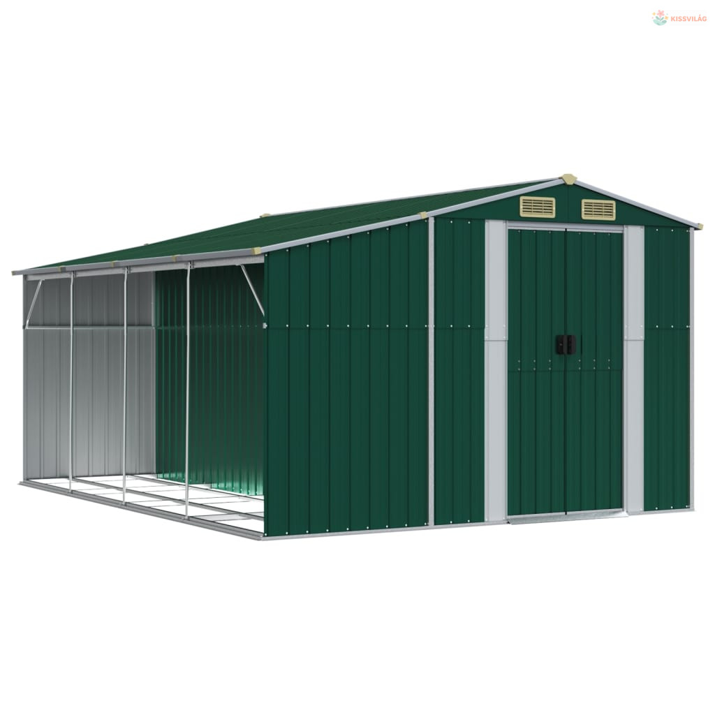 Zöld horganyzott acél kerti fészer 277 x 365,5 x 179 cm