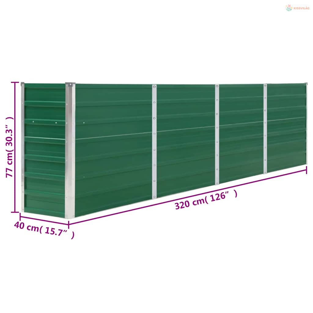 Zöld horganyzott acél kerti magaságyás 320 x 40 x 77 cm