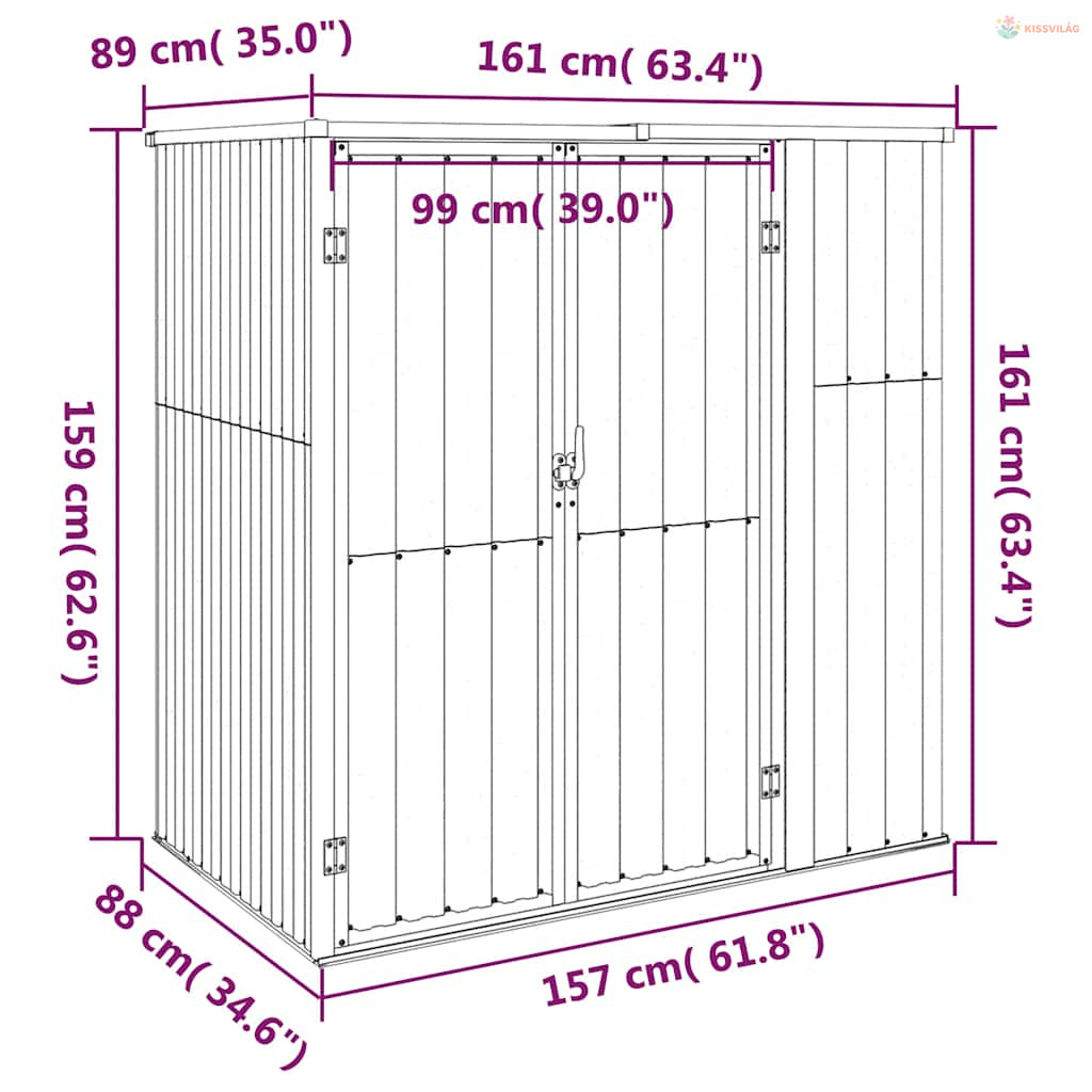 • Praktikus fogantyú: A kerti szerszámos fészer fogantyúval rendelkezik, ami megkönnyíti a be- és kiszállást.