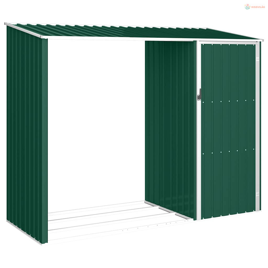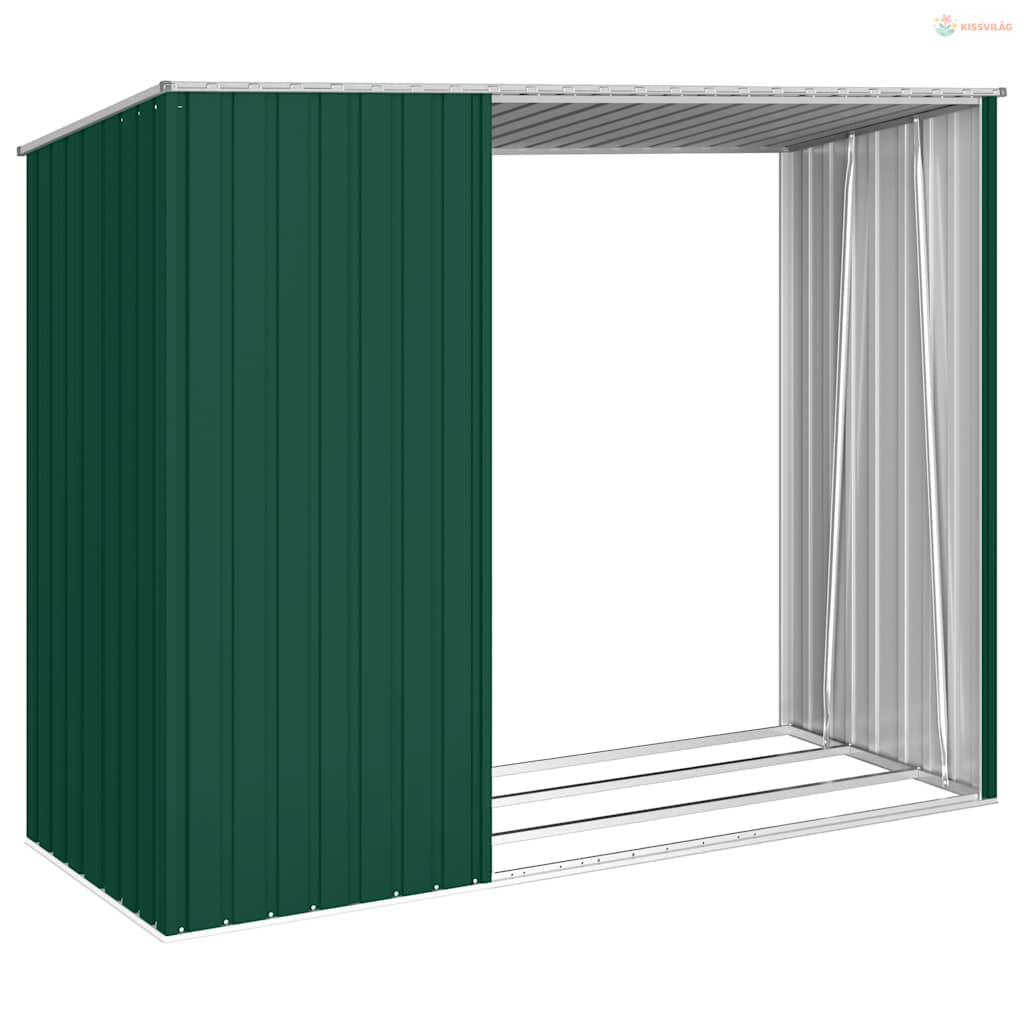Zöld horganyzott acél kerti tűzifatároló 245 x 98 x 159 cm