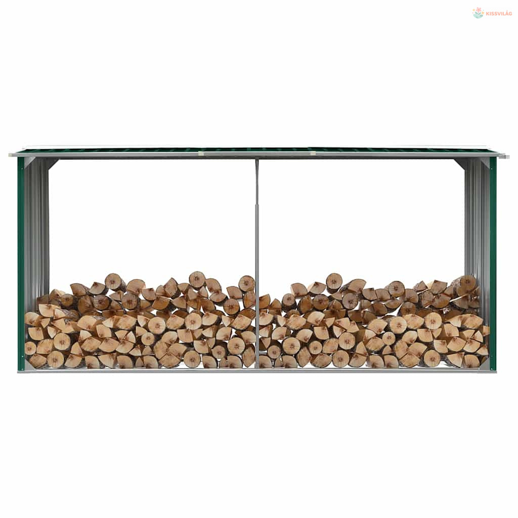 Zöld horganyzott acél kerti tűzifatároló 330 x 92 x 153 cm
