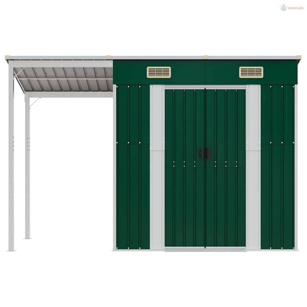 Zöld kerti fészer meghosszabbított tetővel 277x107x181 cm