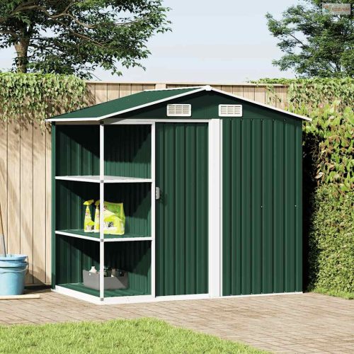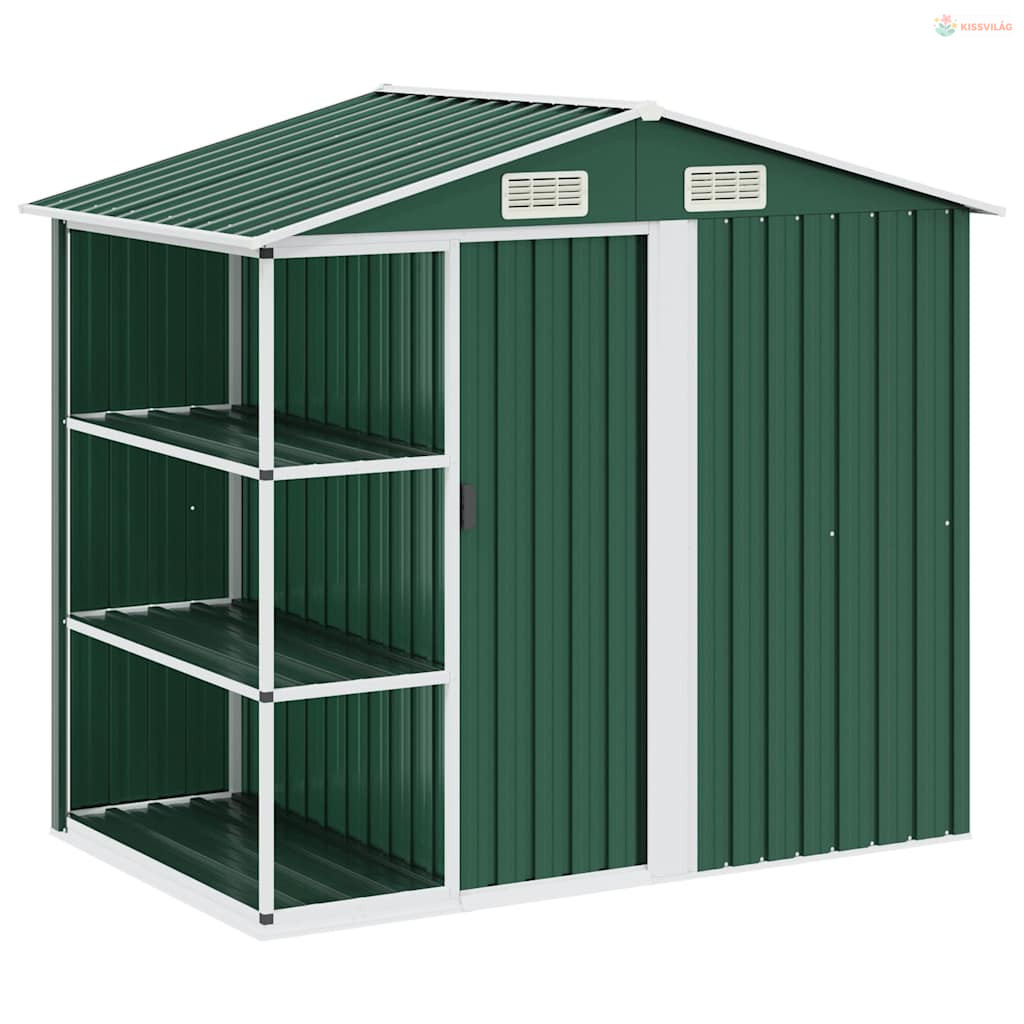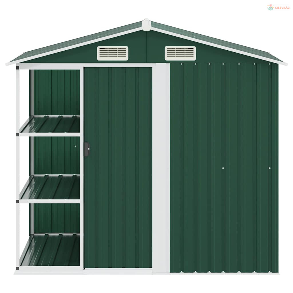 Zöld vas kerti fészer állvánnyal 205 x 130 x 183 cm