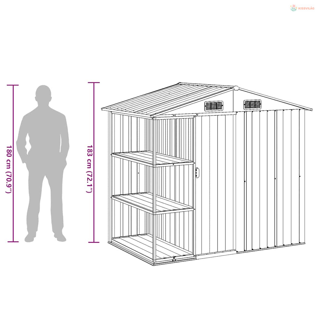 Állványos kerti tárolónk ideális szerszámok, kerti bútorok és kerti felszerelések tárolására. A kerti fészer nemcsak a szennyeződés és a por ellen nyújt védelmet, hanem a szél és az időjárás ellen is.