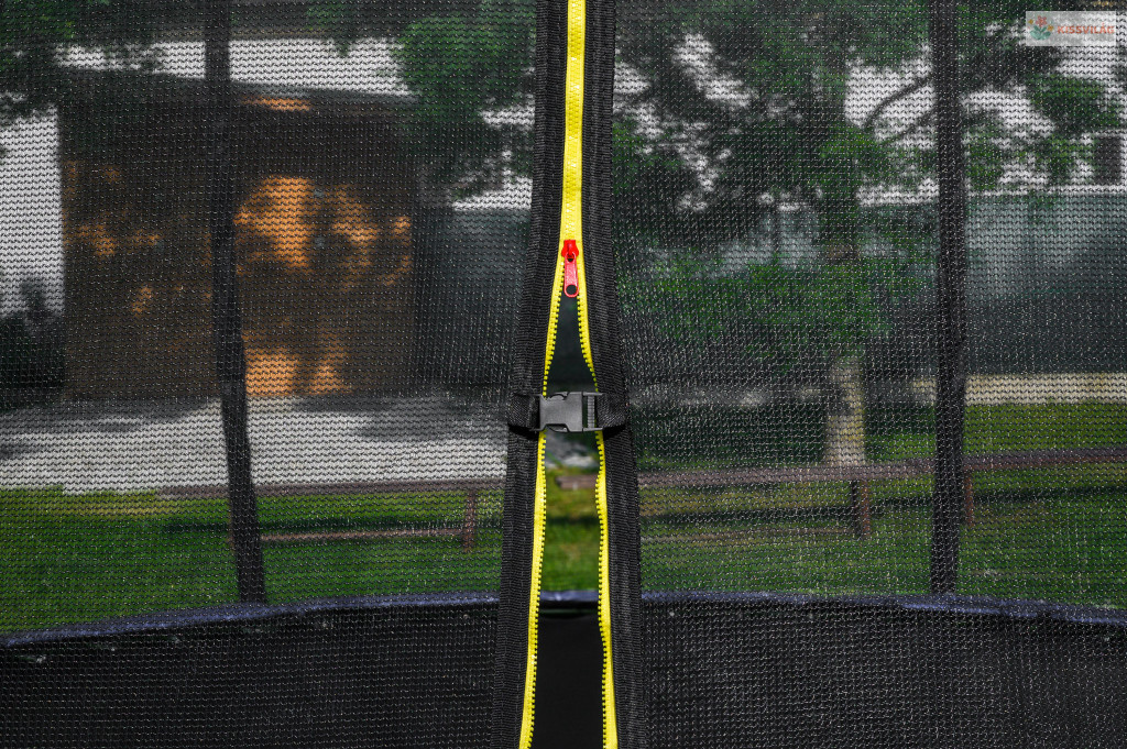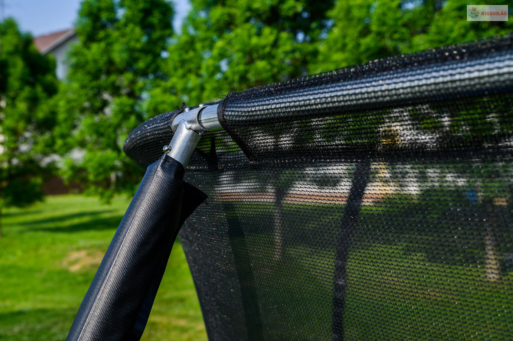 A trambulin védőhálója erős és sűrű szövésű. A biztonsági háló belülről van rögzítve a trambulin keretéhez.