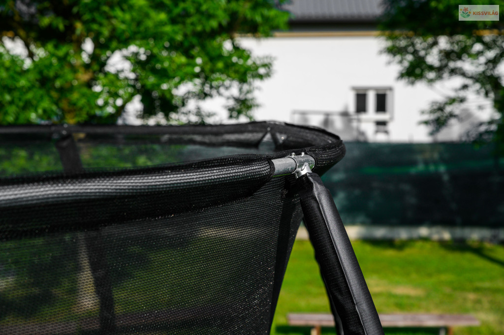 A trambulin védőhálója erős és sűrű szövésű. A biztonsági háló belülről van rögzítve a trambulin keretéhez.