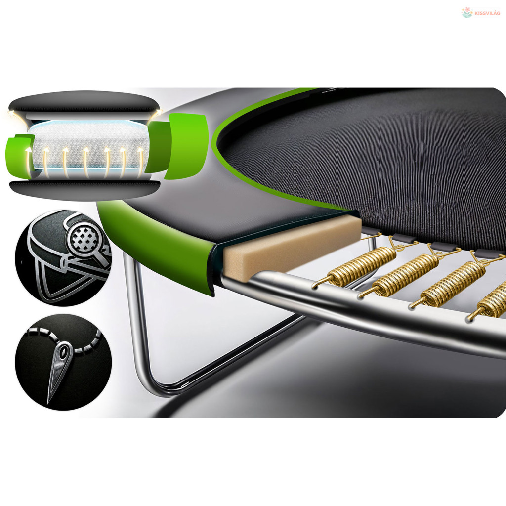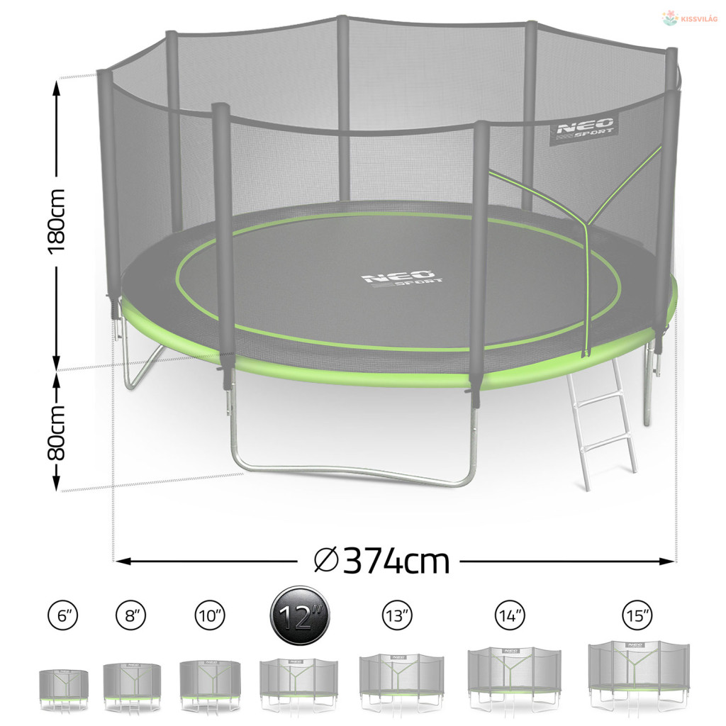 Kerti trambulin 12FT/374 cm külső védőhálóval és létrával Neo-Sport – zöld